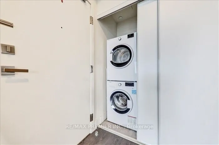 +"Inclusions": "Stainless steel fridge, range, built-in dishwasher, stacked front load, washer and dryer, custom light fixtures and Le Grand electrical outlets and dimmers, custom window coverings, custom bar with glass shelves, custom doors, one outdoor parking owned, one underground parking currently rented. One locker on the same floor. Outdoor gazebo on rooftop Terrace."