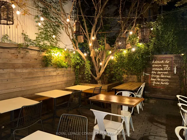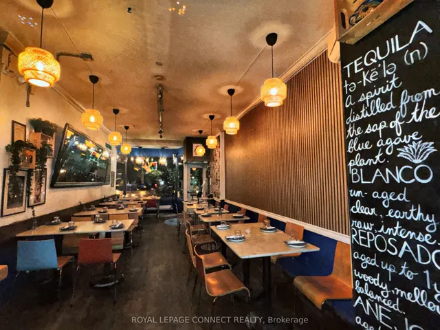 +"PublicRemarks": "Fonda Lola Turnkey Mexican Bistro with Patios in Prime Queen West An exceptional opportunity to own a thriving, fully licensed restaurant in the heart of one of Toronto's trendiest neighborhoods. Offering 1,115 sq ft of interior space with seating for 40guests inside, plus a beautifully landscaped rear patio with capacity for 40 guests. During the summer, take advantage of Cafe TO additional 20 seats, bringing total capacity to 100.Liquor License (LLBO): 40 interior / 40 patio/20 Cafe TO Full Commercial Kitchen New 5-Year Lease in place until July 2030Net Rent: $6,500/month + TMI. Very favorable renewal terms in lease. Fully equipped basement with 4 washrooms, an office, and ample storage Fonda Lola is a well-loved casual bistro known for its vibrant atmosphere, sustainable ingredients, and fresh, locally sourced Mexican cuisine and cocktails. This is a rare turnkey opportunity in a high-traffic, high-visibility location. Perfect for a chef-driven concept or experienced operator looking to capitalize on a vibrant, loyal local clientele and a strong seasonal patio presence."