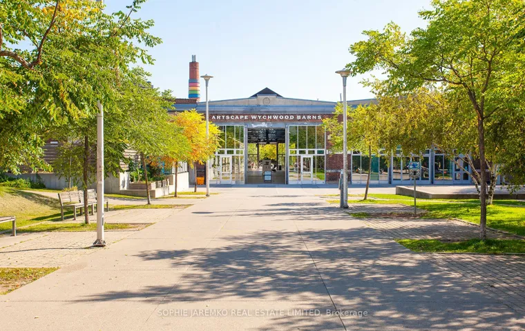 +"PublicRemarks": "A Hidden Gem in the Heart of Toronto! This bright and spacious 2-bedroom suite offers 860 square feet of thoughtfully designed living space with excellent flow! Featuring classic hardwood parquet flooring, a cozy central kitchen, and bedrooms on opposite sides (the only such layout!) for added privacy. This suite is filled with gorgeous natural light thanks to an impressive 45 feet of windows! Enjoy oodles of storage with five closets and a large storage locker, plus an exclusive use surface parking space. The building has been lovingly maintained, with a fully refurbished interior in 2024, and a complete exterior restoration in 2017. Located directly across from the vibrant Artscape Wychwood Barns, enjoy the year-round farmers' market, greenspaces, off-leash dog park, playgrounds, splash pad, beach volleyball and winter skating and outdoor curling! Just steps from all of the action of the St. Clair Ave. West shops, restaurants and cafes! Easy access to TTC's Subway Lines 1 & 2. This is a truly special home in one of Toronto's most vibrant and community-driven neighbourhoods! **********MONTHLY MAINTENANCE FEE INCLUDES: Property Tax!, Heat, Water, Common Elements as per declaration, Building Insurance, Bell Fibe TV & 5G Internet.*************"