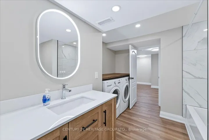 +"PublicRemarks": "Welcome to this beautifully designed 2-bedroom, 1-bathroom basement home featuring standout qualities rarely found in lower-level living. With its secluded rear patio and yard, this unit offers a wonderful blend of comfort, privacy, and everyday ease.Inside, the thoughtful layout is filled with smart storage solutions and practical functionality. The large eat-in kitchen is ideal for both cooking and dining, showcasing brand-new all-white cabinetry, new appliances, quartz countertops, and plenty of room to spread out.The generously sized great room feels warm and inviting, highlighted by large sun-filled windows that brighten the space and create an airy atmosphere. The oversized 4-piece bathroom includes a convenient laundry area with a full-size washer and dryer, a countertop for sorting and folding, and a designated space below to neatly tuck away hampers for a clean, streamlined look.Situated close to all amenities, with an excellent walk score and easy access to public transit, this home delivers exceptional convenience. Fully renovated and never lived in, it's a rare opportunity to enjoy a brand-new, private, and thoughtfully designed living space perfect for those who appreciate modern finishes and extra room to live comfortably."