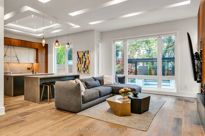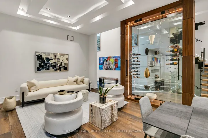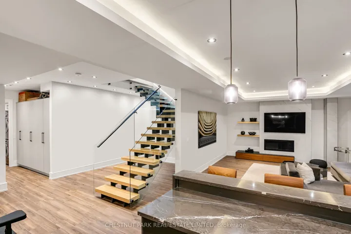 +"PublicRemarks": "This custom-built residence is the ultimate statement in modern luxury, offering 5,382 sq ft of total living space, with every detail designed for elegance & convenience. A rare, accessible elevation where you enter directly into the home & just a few steps down to the yard. Soaring 26.5 ft foyer set the tone for a home flooded with natural light & architectural drama. The main level boasts 11 ft ceilings, flowing seamlessly into a striking kitchen. Outfitted with dual islands, a pantry, custom solid wood cabinetry with full-size porcelain slab doors, quartz countertops, matching backsplash & top-tier Wolf & Sub-Zero appliances, it is a showstopper. An architectural staircase with laser-cut, no-joint metal stringers, 3" solid white oak risers & glass railings is a central design feature. The home includes an elevator, a lit-up custom glass wine & art display & 2 laundry rooms. The primary suite is a private retreat, complete with two walk-in closets & a spa-inspired ensuite featuring a soaker tub & a skylit shower. A stunning mezzanine office (or den) overlooks the main floor, creating a dramatic, yet functional workspace. All Bedrooms have their own ensuite bathrooms. The lower level is well thought out, with over 9 ft ceilings, radiant heated floors, a bar, custom built-ins, a rec room with walkout to the yard, 2nd laundry room, gym, a powder room & a guest bedroom with an ensuite bath. The heated tile floors in the foyer & primary ensuite, professional landscaping, 11 skylights, 3 fireplaces, smart home system with features allowing you to monitor & manage the home even if you are halfway across the world, state-of-the-art alarm system, heated driveway, generator & a 2-car garage with EV charger round out the homes extensive list of luxuries.Set on a rare 50 ft lot, with professional landscaping (& room for a pool) this 4+1 bed, 7 bath home has architectural details at every turn, showcasing the perfect blend of modern innovation, sleek design & everyday comfort"