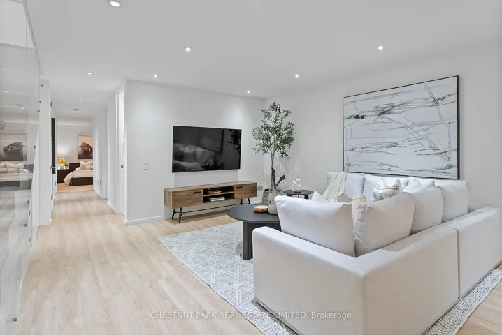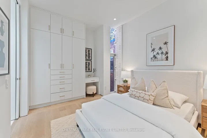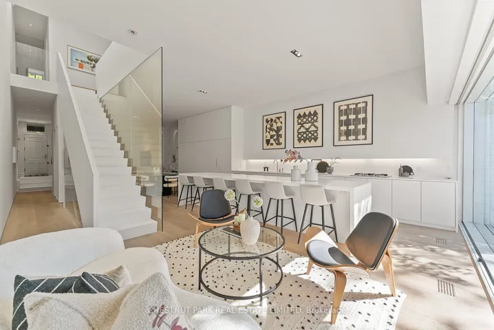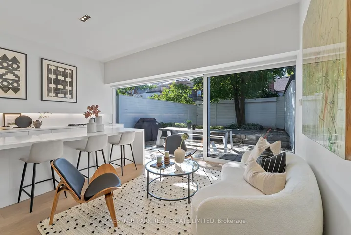 +"PublicRemarks": "Modern architecture meets effortless luxury at 82 Robert Street, a masterfully rebuilt residence tucked behind its preserved heritage façade in one of Torontos most coveted neighbourhoods. Reimagined by award-winning firm GH3 under the direction of Pat Hanson, this home has been celebrated in leading design publications for its bold yet livable aesthetic. Soaring ceilings and a full-height glass wall flood the interior with sunlight, creating a seamless connection to the private landscaped backyard - an ideal extension of the main living space for both family life and entertaining. Wide-plank oak floors, custom millwork, and a sculptural chefs kitchen set an elevated tone across the open-concept main level. Upstairs, generously sized bedrooms are outfitted with bespoke built-ins, including a versatile room perfect for a home office, studio, or nursery. The lower level continues the thoughtful planning with a wrap-around children's workstation, spacious recreation lounge, dedicated laundry room, powder room, and a private guest suite with its own ensuite. The home features thoughtfully positioned private parking in the backyard, discreetly accessed via the laneway for effortless entry and exit. A rare offering where architectural pedigree, natural light, and functional elegance converge - 82 Robert Street is a home designed to impress and built to be lived in."