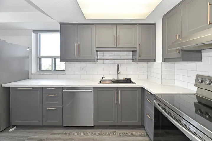 +"PublicRemarks": "Elevate Your Lifestyle in a Sought-After Building. Discover approximately 810 sq. ft. of thoughtfully designed living space in this freshly painted and renovated 1-bedroom plus office, 1-bathroom condo. Move-in ready. Open concept Living/Dining Rooms. The new kitchen features sleek cabinetry and stainless steel appliances, complemented by additional stainless steel appliances in the laundry room. The bathroom has been updated. Modern vinyl flooring throughout brings a fresh, contemporary feel to the entire suite. The spacious layout offers versatility with the option to reimagine the office as an expanded kitchen area. Oversized windows, recently replaced, flood the home with natural light and frame unobstructed city views. The expansive bedroom is equally impressive, with a large picture window and generous closet space. Additional conveniences include ensuite laundry with extra storage, an oversized parking space and a separate locker. This well maintained building has undergone extensive upgrades, including a completed generator project, fresh exterior paint, new landscaping along the north side park area, and new carpets, tiles, and wallpaper currently being installed in the corridors. More enhancements for the common elements are being planned. There is an electric car charging station in the underground parking which is shared with the residents of the neighbouring building. Residents need to open their own account and pay at the station just like any other charging station. Amenities include a 24-hour concierge, Sabbath elevator, visitor parking, fully equipped gym, and sauna. Ideally located steps from TTC, major highways, Lawrence Plaza, shops, restaurants, and parks, this condo offers unmatched value in a prime location. Entrance lobby is undergoing a complete renovation. The current photo of the lobby represents the former lobby. Some photos have been virtually staged."