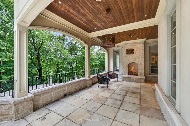 +"PublicRemarks": "Backs Onto Ravine! Perched gracefully at the highest point of Hoggs Hollow, this French Château inspired masterpiece sits on a spectacular 239.08 x 207.81 ft ravine lot (approx. 1.14 acres). Designed by Dee Dee Taylor Hannah and built by award-winning builder Michael Rossini, this timeless stone estate offers over 10,000 sq.ft. of luxurious living space, blending European elegance with modern comfort. The homes distinctive curved and symmetrical design showcases architectural artistry rarely seen today. Featuring 4 bedrooms with ensuites, 9 washrooms, and a 3-car garage with a circular driveway accommodating up to 15 cars, all principal rooms face west, overlooking the serene ravine. A grand marble foyer, curved hallways, and custom millwork opens to elegant living and dining rooms that walk out to the ravine and garden. Two libraries on main floor, five fireplaces, built-in speakers, 10-ft ceilings, and hardwood floors throughout. The gourmet kitchen with double granite islands and an open-concept family room with motorized curtains creates a warm and inviting space for entertaining.Step out to a 700 sq.ft. patio with outdoor fireplace and panoramic ravine views. The primary suite features a lavish 9-piece ensuite, his & her walk-in closets, and heated bathroom floors. The walk-out lower level wth heated floors includes a home theatre, wine cellar, sauna, wet bar, nanny/guest ensuite, and a recreation room with fireplace opening directly to the backyard oasis.The heated concrete pool with cascading waterfall, framed by mature trees, creates a private, resort-like retreat. A rare offering combining elegance, privacy, and tranquility, just moments from the Granite Club, top private schools (Crescent, TFS, Havergal, UCC, BSS), fine dining, and Rosedale & Don Valley Golf Clubs.A true statement of taste, craftsmanship, and enduring luxury in one of Torontos most prestigious enclaves."