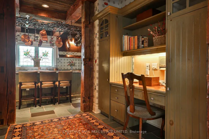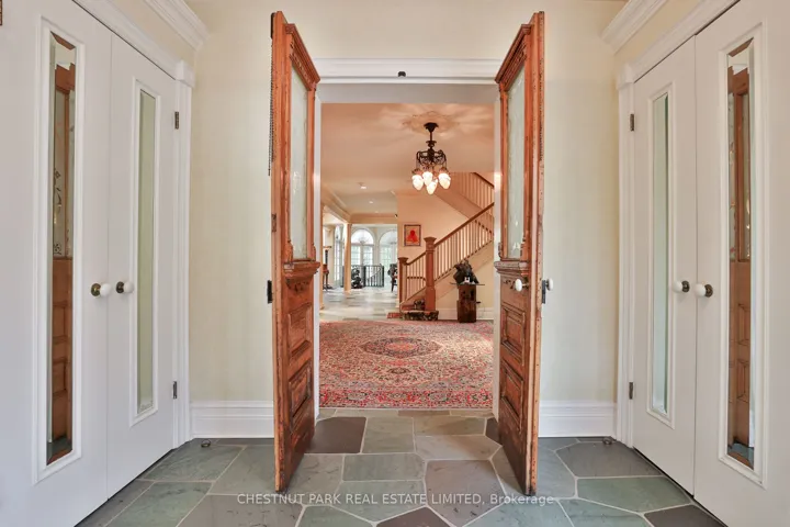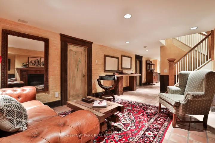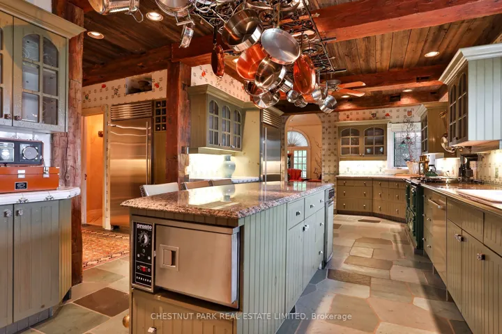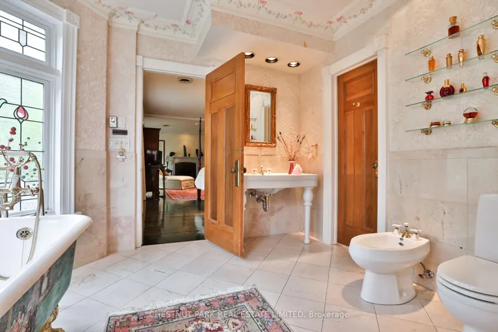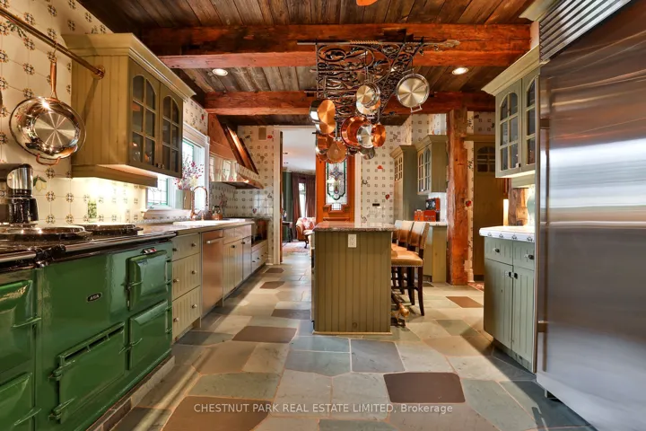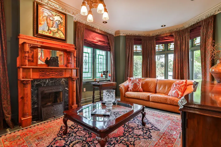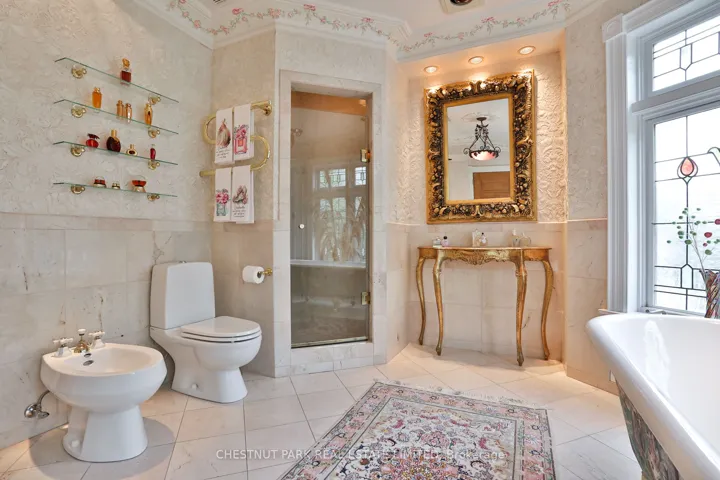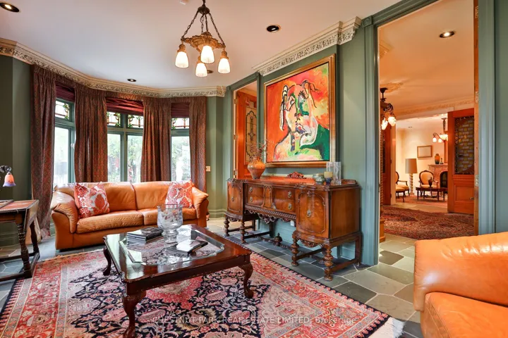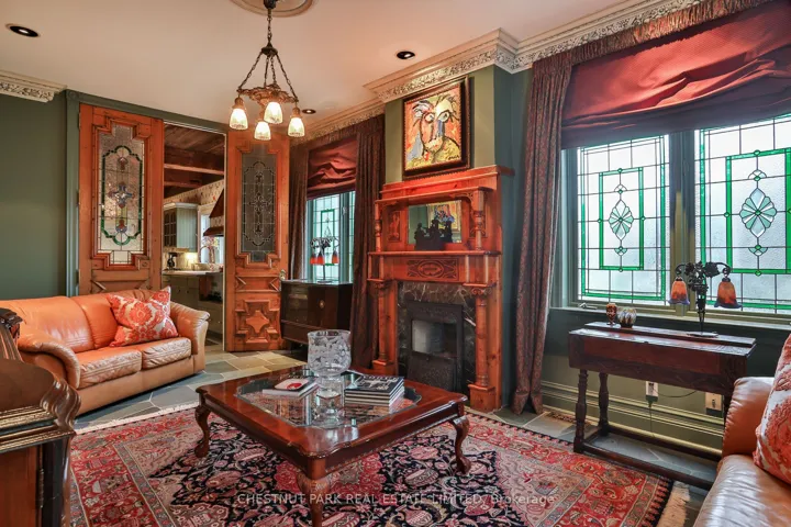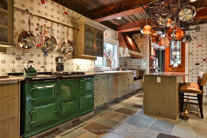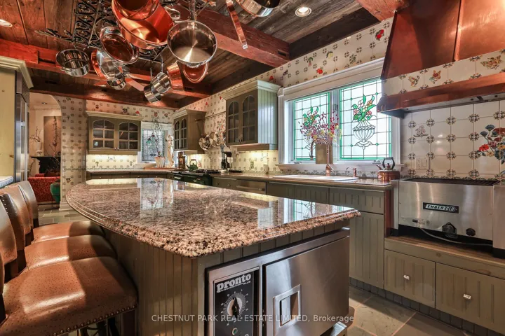 +"PublicRemarks": "One of a kind old world European vibe. Over 7,000 square feet of incredible character filled space with 7 car gated parking. A unique blend of Ralph Lauren mixed with Aspen, Cabbagetown, Riverdale, the Annex and Rosedale. 4 gas fireplaces on main imported from Europe, 9 foot stained glass doors. Columns, pillars, high ceilings, 6 bedrooms, 6 bathrooms, an incredible chef's kitchen with aga stove and barbeque. Island warming ovens. Tranquil private ravine 245 ft in back with 2 tiered decks. Double car built-in garage."
