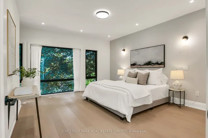 +"PublicRemarks": "Tucked away on a quiet, tree-lined cul-de-sac in coveted Upper Forest Hill, this custom-built home offers over 3,500 sq. ft. of meticulously crafted living space. Designed with both sophistication & function in mind, every detail has been carefully considered to create a residence that is as stylish as it is welcoming. Step inside & feel the sense of light & openness that defines the main floor. Soaring 10 ceilings & expansive windows flood the living & dining spaces with natural light & sleek finishes set a tone of understated luxury. At the heart of the home, the kitchen impresses with a striking waterfall centre island, premium integrated appliances & storage, the perfect balance of beauty & utility. The family room, anchored by a modern gas fireplace & stone facade, opens seamlessly onto the deck & backyard. The architectural glass & wood staircase rises gracefully to the 2nd level, where 3 skylights brighten every step. The primary bedroom is a sanctuary, featuring a generous walk-in closet & a 5-piece spa-like ensuite with a deep soaker tub, double vanity & heated floors. 3 additional bedrooms are well-proportioned, sharing a contemporary 4-piece hall bath, while a convenient second-floor laundry adds ease to everyday living. The lower level extends the home's living space with incredible versatility & feels like a main floor with a walkout to a covered patio & nearly floor to ceiling windows. A spacious rec room, complete with a wet bar, provides the ideal backdrop for casual entertaining. A 5th bedroom & full 3-piece bathroom are perfectly suited for guests, while the mudroom with rough-in for a 2nd laundry & direct garage access & heated floors enhances convenience. This home is more than just a beautiful place to live - it's a lifestyle. A true blend of modern design, thoughtful function & Perfectly located near top-rated schools, the shops & restaurants along Eglinton & convenient TTC access."
