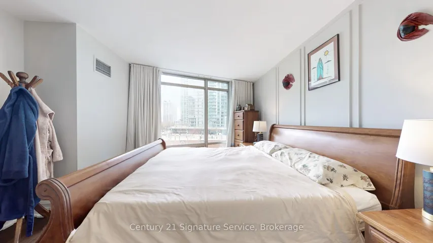 +"PublicRemarks": "Rarely offered - the largest unit in the Optima Condos! Enter through the sleek lobby with 24-hour concierge service for security and seamless delivery handling.Welcome to Suite 315, a bright, open-concept living space wrapped in floor-to-ceiling windows with unobstructed southeast views of the city skyline and Lake Ontario. Natural light fills the unit throughout the day, complemented by new automated blinds (2024) for effortless ambiance control.The modern kitchen features a large centre island perfect for dining or entertaining, quartz countertops, generous cabinetry, and a custom built-in extension. New engineered hardwood floors (2024) and fresh paint (2025) create a warm, contemporary feel throughout.The primary bedroom fits a king bed and includes a spacious closet plus a private 3-piece ensuite. The second bedroom features two built-in closets and a large window overlooking the balcony, ideal for morning coffee or evening relaxation. A versatile den offers flexibility-ideal as a home office, reading nook, or easily converted into a third bedroom with French doors.Attention baseball fans! The Rogers Centre is just steps away-catch every game without worrying about traffic or parking. With the waterfront, King West, and Queen West nearby, enjoy endless restaurants, shops, and entertainment all within walking distance.This suite offers a flawless mix of spaciousness, style, and prime downtown convenience."