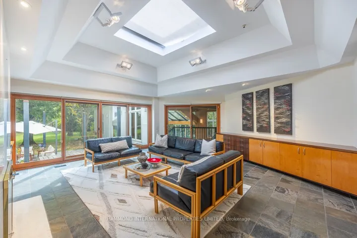 +"PublicRemarks": "The Glasshouse at Bluejay is a bold expression of light, balance, and modern artistry, redefining architectural living in one of Toronto's most exclusive enclaves.Set on a private .8 of an acre and offering over 10,000 square feet of living space, this mid-century inspired residence is a masterful study in proportion, texture, and natural harmony. Walls of glass capture the changing light and invite nature into every room. The open-concept plan flows with grand principal spaces, soaring ceilings, and refined finishes that evoke both sophistication and calm. A private elevator provides seamless access across all levels. At the heart of the home is a rare and spectacular indoor pool pavilion, a sanctuary of glass and water where reflections move with the rhythm of the day. The gourmet kitchen, featuring sleek European cabinetry and professional-grade appliances, opens to an expansive patio and multiple outdoor seating areas designed for entertaining.The residence offers 4+2 bedrooms, including a primary suite that serves as a private retreat with panoramic views, a spa-inspired ensuite, and dual dressing rooms. The fully finished lower level extends the lifestyle with an open recreation area, fitness and spa lounge, and additional bedrooms with direct access to the pool. Just minutes from Toronto's finest schools, boutiques, and dining, The Glasshouse at Bluejay is more than a residence. It is a work of art, an architectural statement where design, comfort, and light converge in perfect balance. The Glasshouse at Bluejay. A residence that embodies the essence of modern refinement.A world of magnificence awaits"