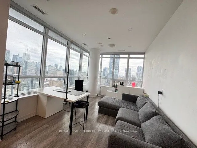 +"PublicRemarks": ""365 Church!" Stunning Furnished 1-Bedroom Penthouse with 2 Full Bathrooms, offering over 700 sq. ft. of modern living space. Bright southwest corner unit with CN Tower and partial lake views. Features 9' smooth ceilings, expansive wall-to-wall windows, and laminate flooring throughout. Contemporary kitchen with integrated appliances, quartz countertops, and pot lights in the main living/dining area. Exceptional building amenities include 24-hour concierge, gym, party room, theatre room, and rooftop terrace. Steps to subway, Eaton Centre, TMU, U of T, and shopping. Available for 6 months or longer. Fully furnished, with all utilities and internet included - perfect for someone seeking stylish and convenient downtown living!"