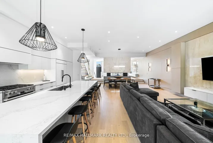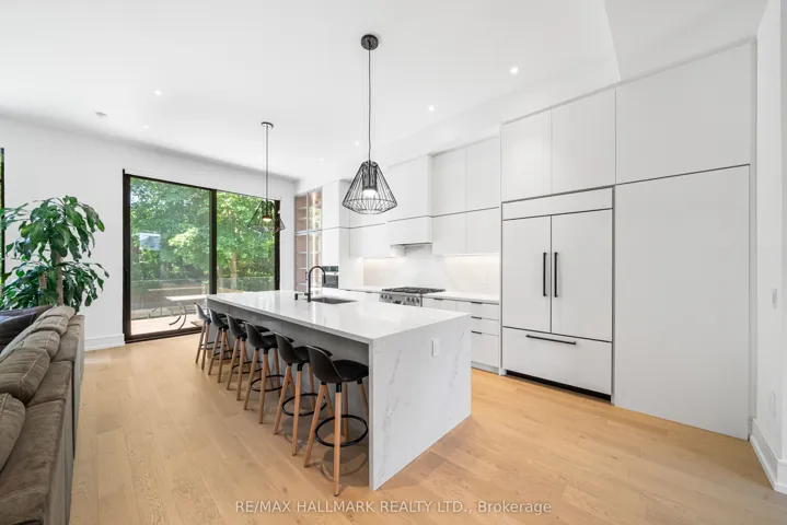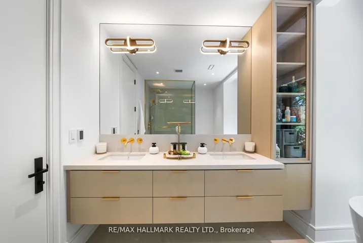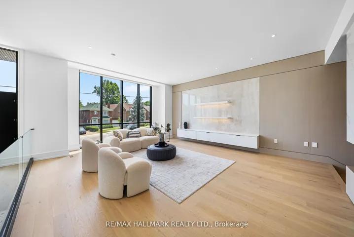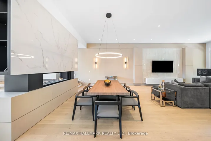 +"PublicRemarks": "Welcome to 22 Divadale, located in the most desirable, quite, highly accessible and private pockets of North Leaside! This is by far one of the most uniquely designed homes in Leaside, featuring a layout that blends flow, function, and style across over 4,800 sqft of luxurious living space and checking every box. The main floor features soaring 12 foot ceilings, a chef inspired kitchen with an oversized island that seats eight, top of the line Miele & Wolfe appliances, with walkout to a large deck perfect for entertaining featuring exterior sound system, exterior lighting and gas line BBQ. White oak hardwood floors and stairs and sleek glass railings run throughout. Second floor features primary bedroom with stunning 7 piece ensuite, with heated floors and a large walk in closet with a skyslight. Three oversized bedrooms each with direct access to a bathroom and large closets. A rarely offered two floor basement with tons of features including a theatre room, nanny suite, 5 and 4 piece bathrooms, radiant heated flooring, wine display, built in speakers, separate entrance, large windows with walk out and 12 foot ceilings. A rare double car garage, hard to find in Leaside, is complemented by a full snow melt system/radiant floor heating covering the driveway, front porch, steps, side path, backyard, and basement walkout and landing. Additional features include a Control4 smart home system, electric blinds, designer lighting with dimmers, exterior lighting, a sprinkler system, gas fireplaces, skylights, and laundry on two levels. Just steps from Bayview Avenue and Eglinton Avenue. Located minutes from the top schools in Toronto including Northlea Elementary and Middle School, Bessborough Drive Elementary and Middle School, Park Lane Public School and Leaside High School."