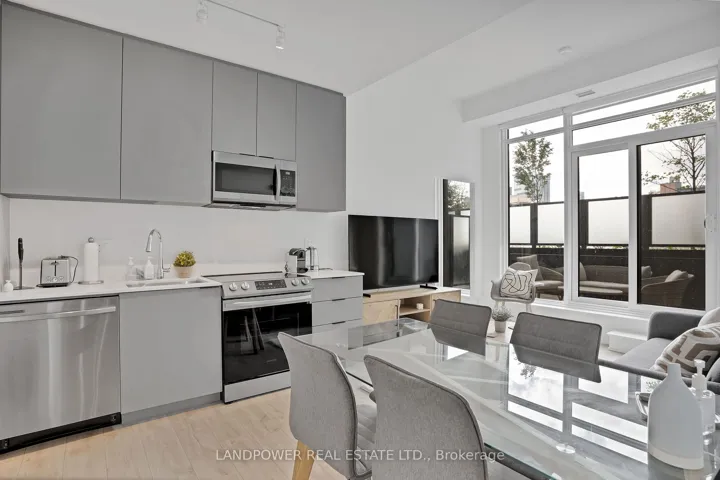 +"PublicRemarks": "Fully furnished and move-in ready! This stunning 2-bedroom, 2-bath suite at Home on Power offers modern luxury in the heart of Toronto's vibrant Corktown/Moss Park community. Featuring an exceptional 98 Walk Score, this bright and spacious corner unit boasts 9' smooth ceilings in the kitchen and 12' ceilings in the living areas and bedrooms, flooding the space with natural light. Enjoy a nearly 300 sqft private terrace with patio furniture, perfect for relaxing or entertaining outdoors. Open-concept layout with contemporary finishes, stainless steel appliances, custom roller blinds, and stylish designer furnishings throughout. Includes EV parking space for added convenience. Located steps to TTC, St. Lawrence Market, Distillery District, and King East dining - with easy access to the DVP, Gardiner, and Downtown Core. Tenants have full access to premium amenities: outdoor pool, fitness centre, yoga studio, rooftop terrace, and 24-hour concierge. Ideal for professionals or corporate clients seeking a turnkey urban lifestyle."