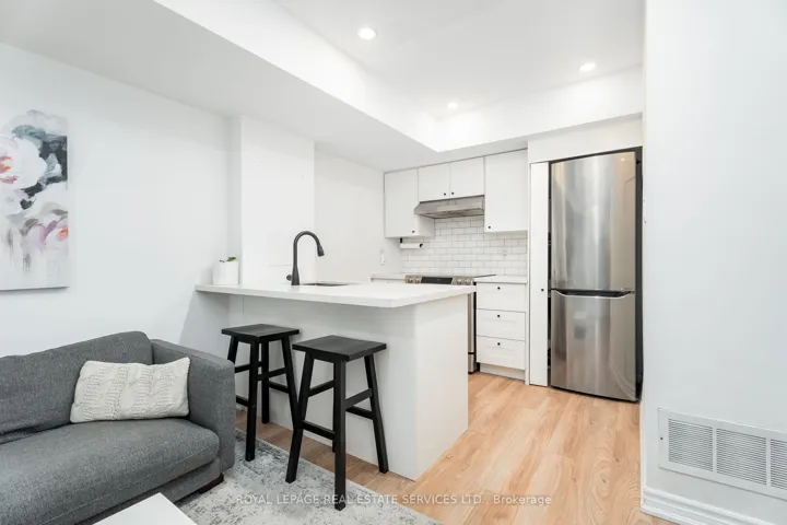 +"PublicRemarks": "Rarely Offered Portland Park Village Townhome! Enjoy the best of downtown living in this beautifully updated 1-bedroom, 1-bathroom suite with a private terrace, perfect for entertaining or relaxing outdoors. The kitchen and bathroom were renovated in 2020, showcasing modern style and quality finishes. The chef's kitchen features quartz countertops, a convenient breakfast bar, and stainless steel appliances, while the open-concept layout offers seamless flow between the living and dining areas. Additional highlights include laminate flooring, ensuite laundry, and a spacious bedroom. With your own private entrance and access to a lovely garden space, this home offers the ideal balance of comfort and city living. Perfectly located across from the park and steps to King and Queen West's vibrant shops, restaurants, bars, TTC, and the Financial District. Move in and enjoy all that this sought-after neighbourhood has to offer!"