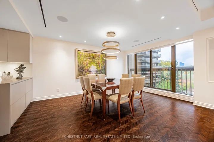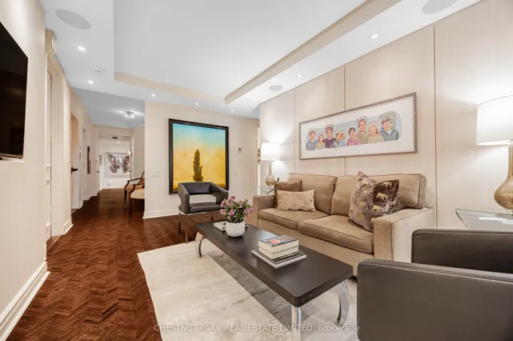 +"PublicRemarks": "Commanding spectacular, uninterrupted skyline & south facing park views, this approximately 2,100 sq. ft. dazzling renovation exemplifies refined city living at Yonge & St Clair. Set within one of the area's most coveted, full-service buildings, it offers exceptional privacy, white-glove amenities, & direct elevator access into the suite-an elegant rarity that sets the tone for the lifestyle within. A dramatic, open-concept layout in the entertaining area is well separate from the private quarters, with wall-to-wall glass infusing the principal rooms with natural light & breathtaking views of David Balfour Pk. The expansive LR & DR flow seamlessly for glamorous entertaining or intimate evenings by the wood-burning fireplace. There is ample space for a baby grand piano, & sliding doors to a Juliette balc inviting the outdoors in. Every finish speaks of quiet sophistication: rich hardwood underfoot, bespoke millwork, custom built-ins including ceiling speakers for music & subtle architectural detailing throughout. The open living, dining & family room areas transition effortlessly into a sleek, contemporary chef's kit with stone surfaces & integrated cabinetry, providing both visual harmony & high functionality. The DR easily accommodates 10-12 guests, making it ideal for elegant dinner parties. The open concept allows the DR & Fam Rm to be used interchangeably. The private wing is equally impressive. The king-size PR suite enjoys direct access to a secluded balcony & offers expansive wardrobe space, with both a double closet & a generous walk-in. Its 7 pc spa-like bath features a deep soaking tub, separate shower, dual sink vanity, & a priv sauna-an indulgent retreat after a day in the city. The 2nd BR, fitted with extensive built-ins & its own 3 pc ensuite, is ideal for guests or home ofc. A discreet powder rm, rare ensuite laundry rm, & remarkable in-suite storage further enhance comfort & convenience."