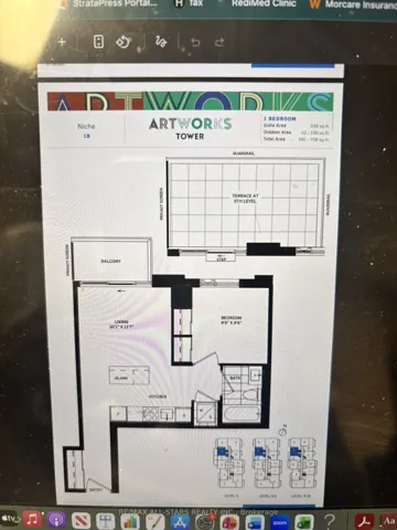 +"PublicRemarks": "Artworks Tower**Suite Area 539 Sq Ft** Outdoor Area 52 Sq Ft** Total Area 591 Sq Ft.**One Bedroom**Balcony** See Floor Plan** Great Location** Short walk to Downtown Toronto**Quartz Countertop** Stainless Steel Appliances**Mega Gym W/ Indoor and Outdoor Spaces**Party Room** Outdoor Terrace,Arcade/Games Rm, Fun Kids Zone, Work Lounge/Meeting Rm**No Need to Drive**"