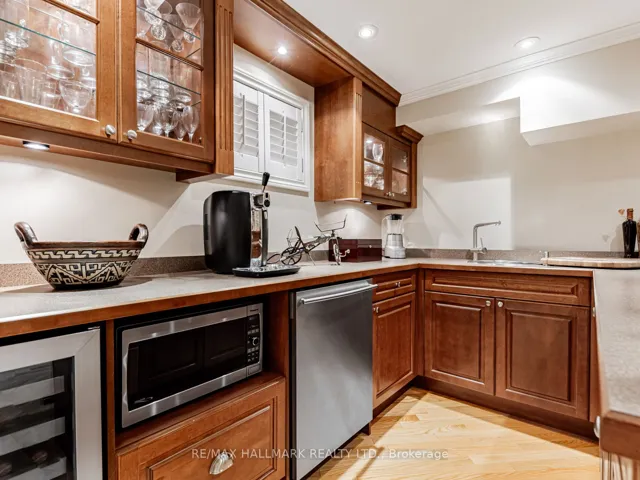 +"PublicRemarks": "Warm and inviting, this beautiful turn-key family home is nestled in the highly sought-after Banbury/York Mills enclave. Perfectly situated on the interior portion of Ames Circle, this premium location offers exceptional peace and privacy. Elegantly updated and meticulously maintained with a high level of craftsmanship. The home features a functional layout complemented by quality finishes throughout, including high-end appliances, custom built-ins, hardwood floors, crown moulding, California shutters and an updated garage with convenient direct access to the home. The fully finished basement is an entertainers dream, complete with a cozy recreation room, gorgeous custom wall units, gas fireplace, and a fully equipped wet bar featuring a wine fridge, dishwasher, and microwave, ideal for relaxing evenings or hosting friends and family. Step outside to your own private retreat and enjoy a professionally landscaped yard with a pergola, hot tub, fire pit, and retractable awning. Ideally situated within walking distance to top-rated schools such as Denlow Public School, Windfields Middle School, and York Mills Collegiate, as well as nearby parks, TTC, and local amenities, this home combines comfort, convenience, and timeless appeal in one of Torontos most desirable neighbourhoods."