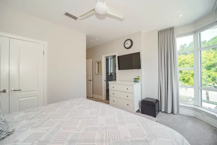 +"PublicRemarks": "Experience luxury living in this rarely offered 2-bedroom, 2-bathroom residence in a boutique building designed by renowned architect Arthur Erickson. Step directly from the elevator into a marble-tiled foyer, where thoughtful design and refined finishes unfold. The expansive open-concept layout features hardwood floors, 9-ft smooth ceilings, pot lights, and crown moulding throughout. A renovated kitchen impresses with granite countertops, a mosaic tile backsplash, built-in stainless steel appliances, and a large center island with breakfast seatingideal for both everyday living and entertaining.Floor-to-ceiling windows are fitted with custom automated blinds and offer tranquil views of lush greenery next to the ravine trail. A Juliette balcony and a rare private terrace extend the living space outdoors, creating a seamless connection to nature. Bedrooms are thoughtfully separated for privacy, including a generous primary suite with his-and-hers closets featuring built-in organizers, and a stylish 3-piece ensuite. The second bedroom includes a double closet and easy access to the renovated 4-piece main bath.Enjoy the convenience of ensuite laundry and the comfort of central air. Building amenities include a concierge, indoor pool, sauna, fitness centre, car wash, and visitor parking. This suite also includes two owned underground parking spaces and a large locker. A truly rare opportunity in a highly desirable, tranquil setting."