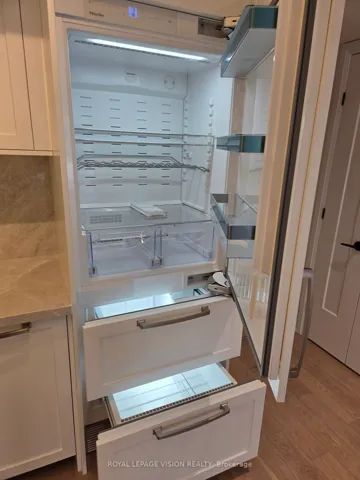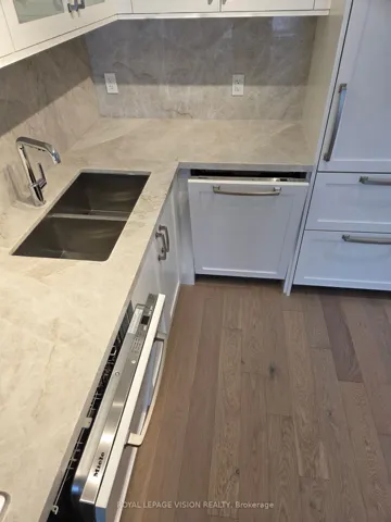 +"Inclusions": "Locker, window coverings, fridge, gas stove cooktop, oven, 2 dishwashers ( 1 dairy, 1 meat ) microwave, washer and dryer, upgrades include wood floors, kitchen cabinets, stone backsplash and Miele appliances, washroom stone top, heated marble floor and tub wall tile, added potlights in bedroom and living area."