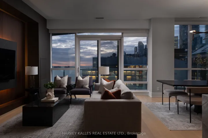 +"PublicRemarks": "Welcome to 55 Merchants' Wharf, an exceptional waterfront residence where sophisticated design, bespoke finishes, and sweeping lake and city views define elevated downtown living. Thoughtfully curated throughout, this home offers a seamless blend of modern elegance and timeless craftsmanship.The expansive open-concept living space is anchored by a dramatic custom wood-slat feature wall with integrated ambient lighting and a sleek wall-mounted TV, creating an architectural focal point ideal for both refined entertaining and everyday living. Floor-to-ceiling windows bathe the interior in natural light and frame tranquil water views, while neutral tones, clean lines, and premium finishes create a calm, upscale atmosphere that flows effortlessly into the chef-inspired kitchen featuring a dramatic waterfall island, integrated appliances, bespoke cabinetry and striking architectural details that blend warmth with modern sophistication. The dining area is perfectly positioned beside expansive windows, offering an ever-changing urban and waterfront backdrop for memorable meals and gatherings.he primary bedroom is a serene, hotel-inspired retreat with floor-to-ceiling windows, wide-plank hardwood flooring, designer lighting and detailing. The spa-like ensuite offers a freestanding soaker tub, glass-enclosed rainfall shower, double vanity with stone countertops, and elegant wood and marble finishes.A generously sized second bedroom provides flexibility as a guest suite or executive home office complemented by a private ensuite with sleek modern finishes. Step onto the private balcony and enjoy unobstructed views of Lake Ontario-perfect for morning coffee or sunset relaxation. Ideally located steps from the waterfront boardwalk and minutes from the Financial District, St. Lawrence Market, and Toronto's premier dining and cultural destinations, this residence delivers a rare opportunity for luxury waterfront living in one of the city's most sought-after addresses."
