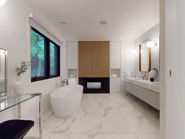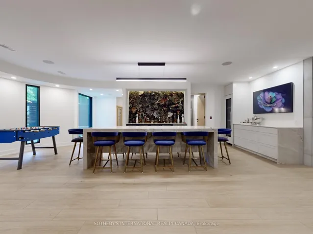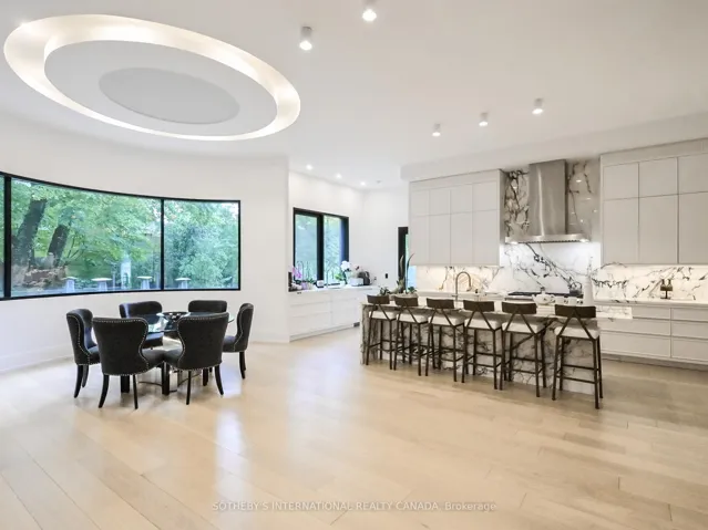 +"PublicRemarks": "**Architecturally Significant Masterpiece in Hoggs Hollow!** A true statement property with a modern design, resort amenities, and complete privacy on an exclusive street, one of four homes! No detail spared in this *contemporary, custom residence* set on one of the areas most spectacular lush, treed lots. Your own *private, Zen-inspired resort* with soaring floor-to-ceiling windows, 11.5ft ceilings throughout the main floor, 10.5ft ceilings throughout the second floor, skylights, and sun-filled living spaces. The Owners have further customized this already stunning home $$$ The main level boasts an *open-concept layout* with a double-sided wall aquarium, Spacious principal rooms, gourmet kitchen, multiple serveries, outstanding millwork, artistic accent walls, and unique ceiling designs. Glass railings, custom lighting, and recessed features enhance the architectural flow. Retreat upstairs to the *year-round 2nd floor heated solarium with balcony, retractable windows and hot tub. This home is equipped with a Private glass elevator that spans all levels, multiple gas fireplaces, sound system with built-in speakers and Home Automation. 2 furnaces, 2 CAC, CVAC, and full security with cameras complete the homes impressive features. The lower level is an entertainers dream: 5th bedroom with ensuite, home theater room, Infrared Sauna, entertainers bar, enclosed kitchen, fitness room, spacious rec area with stunning wine wall, and walkout to the yard. The rear grounds are pure resort luxury with pool + waterfall, spacious patio, built-in BBQ, custom lighting & professional landscaped that further extends surrounded by a Private Treed Lot and beyond. For convenience, this home features a generator, heated Driveway, back patio and Walk-In landing into the basement."