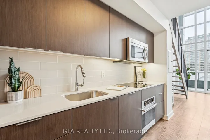 +"PublicRemarks": "Welcome To This Spacious Two-Storey Loft In The Sought-After Liberty Market Lofts, Located In The Heart Of Liberty Village! With Soaring 17-Foot Ceilings And Floor-To-Ceiling Windows Equipped With Automated Blinds, The Space Is Filled With Natural Light And An Open, Airy Feel. The Sleek Kitchen Features Quartz Countertops, A Matching Island, And Integrated Appliances, Combining Modern Design With Everyday Function. The Large Primary Bedroom On The Upper Level Easily Fits A King Size Bed And Includes A Walk-In Closet And Convenient In-Suite Laundry. Two Bathrooms For Added Convenience And Perfect For Entertaining! Step Out Onto Your East-Facing Balcony To Enjoy The View And The Morning Sun. This Loft Is One Of The Widest And Largest 1-Bedroom Layouts In The Building, Offering More Living Space Than Typical Units. Building Amenities Include A Fitness Centre, Basketball Court, Business Centre, Party Room, And 24-Hour Concierge. Living In Liberty Village Means Everything Is At Your Doorstep! Grocery Stores, Banks, Cafés, Restaurants, And Gym/Fitness Studios, Along With Easy Access To Both TTC, Go Transit & Major Highways. This Unit Offers The Perfect Balance Of Space, Comfort, And Convenience In One Of Toronto's Most Desired Neighbourhoods!"