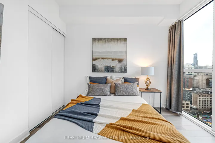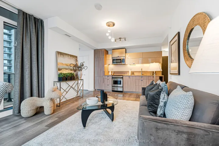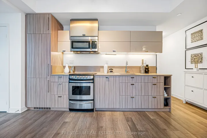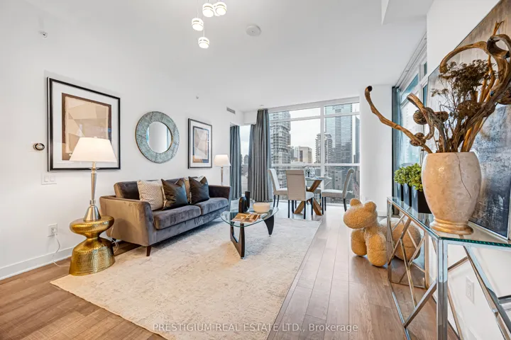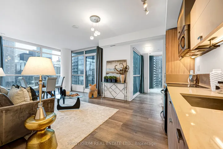 +"PublicRemarks": "Welcome to this stunning southeast-facing corner suite offering over 800 square feet of bright, beautifully designed living space. Floor-to-ceiling windows wrap the unit, filling it with natural light and showcasing spectacular city views. Every detail reflects modern elegance - from the 9-foot ceilings and contemporary cabinetry to the designer bathrooms and sleek finishes throughout.The gourmet kitchen features premium stainless steel appliances, quartz countertops, and an undermount sink, perfect for both entertaining and everyday living. The open-concept layout creates a seamless flow, maximizing functionality with no wasted space.Located steps from Toronto's most iconic landmarks, the Financial District, premier dining, world-class entertainment, and effortless transit access, this residence captures the essence of sophisticated downtown living."