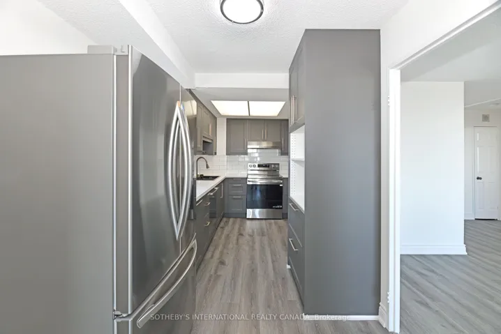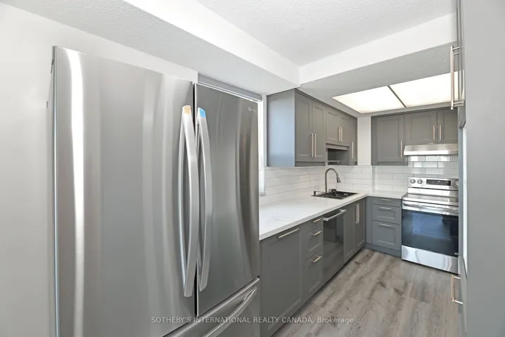 +"PublicRemarks": "Elevate Your Lifestyle in a Sought-After Building. Discover approximately 810 sq. ft. of thoughtfully designed living space in this freshly painted and renovated 1-bedroom plus office, 1-bathroom condo. Move-in ready. Open concept Living/Dining Rooms. The new kitchen features sleek cabinetry and stainless steel appliances, complemented by additional stainless steel appliances in the laundry room. The bathroom has been updated. Modern vinyl flooring throughout brings a fresh, contemporary feel to the entire suite. The spacious layout offers versatility with the option to reimagine the office as an expanded kitchen area. Oversized windows, recently replaced, flood the home with natural light and frame unobstructed city views. The expansive bedroom is equally impressive, with a large picture window and generous closet space. Additional conveniences include ensuite laundry with extra storage, an oversized parking space and a separate locker. This well maintained building has undergone extensive upgrades, including a completed generator project, fresh exterior paint, new landscaping along the north side park area, and new carpets, tiles, and wallpaper currently being installed in the corridors. More enhancements for the common elements are being planned. There is an electric car charging station in the underground parking which is shared with the residents of the neighbouring building. Residents need to open their own account and pay at the station just like any other charging station. Amenities include a 24-hour concierge, Sabbath elevator, visitor parking, fully equipped gym, and sauna. Ideally located steps from TTC, major highways, Lawrence Plaza, shops, restaurants, and parks, this condo offers unmatched value in a prime location. Entrance lobby and corridors have undergone a complete renovation. The current photo of the lobby represents the former lobby. Some photos have been virtually staged."