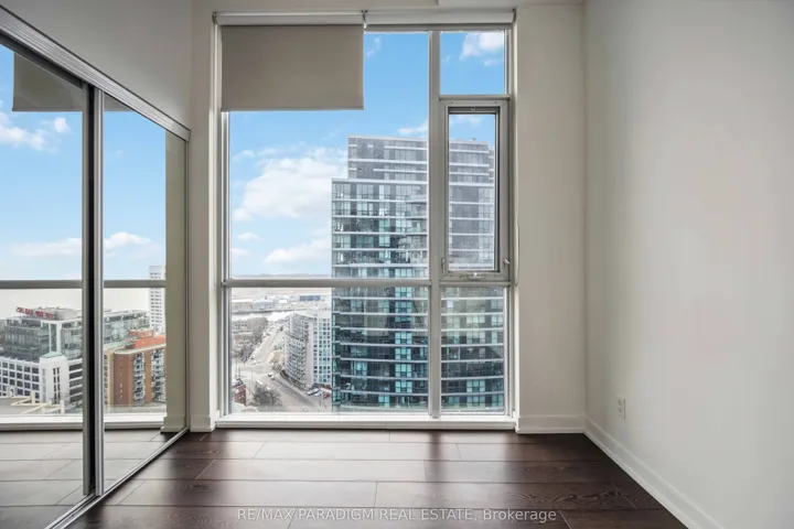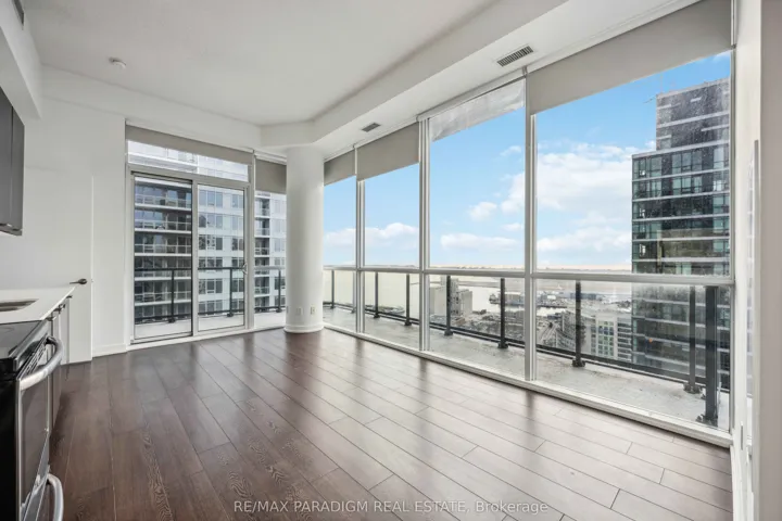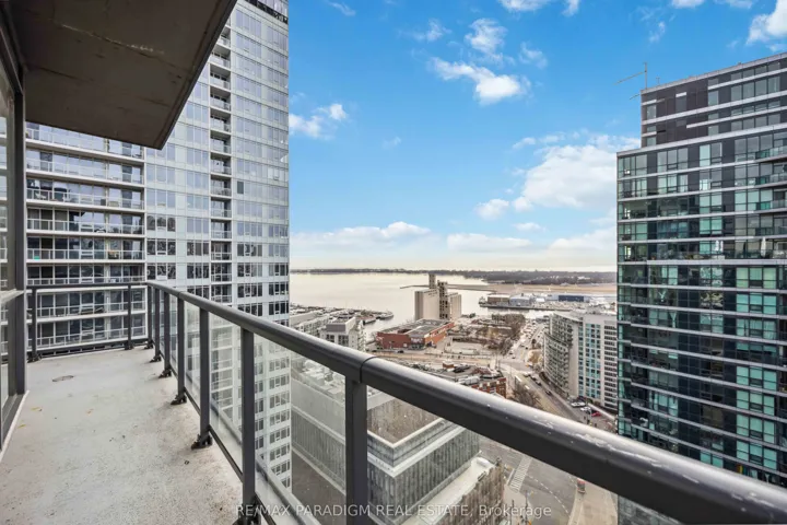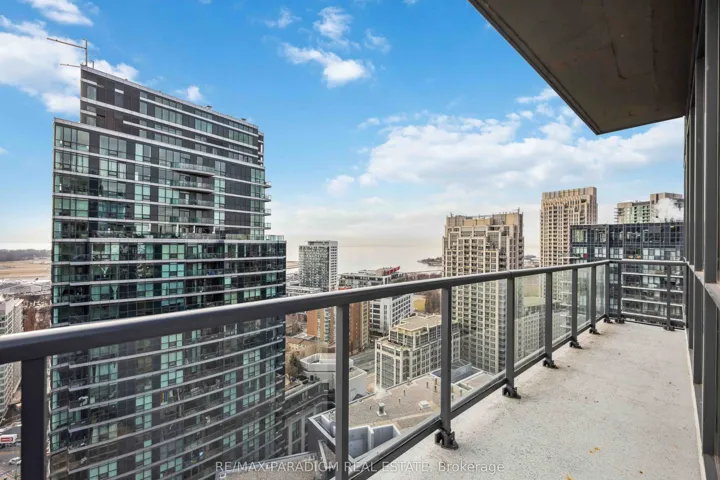 +"PublicRemarks": "Experience luxury living in this spectacular 2-bedroom corner suite in a highly coveted downtown building. Boasting 10-ft ceilings, floor-to-ceiling wraparound windows, and a massive wraparound terrace with breathtaking lake and city views, this unit offers an abundance of natural light and modern elegance. Features include a sleek open-concept kitchen with stainless steel appliances, a walk-in closet, and laminate flooring throughout."