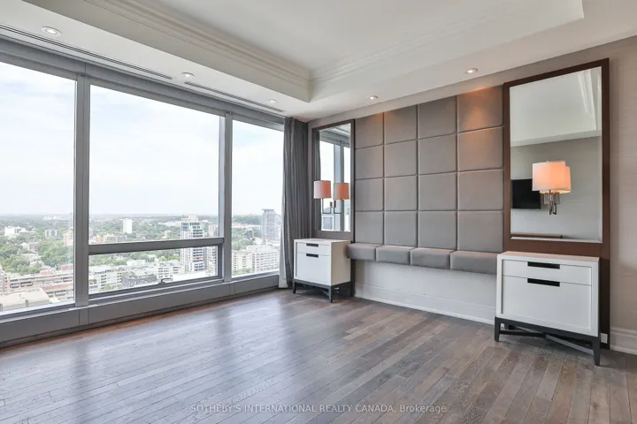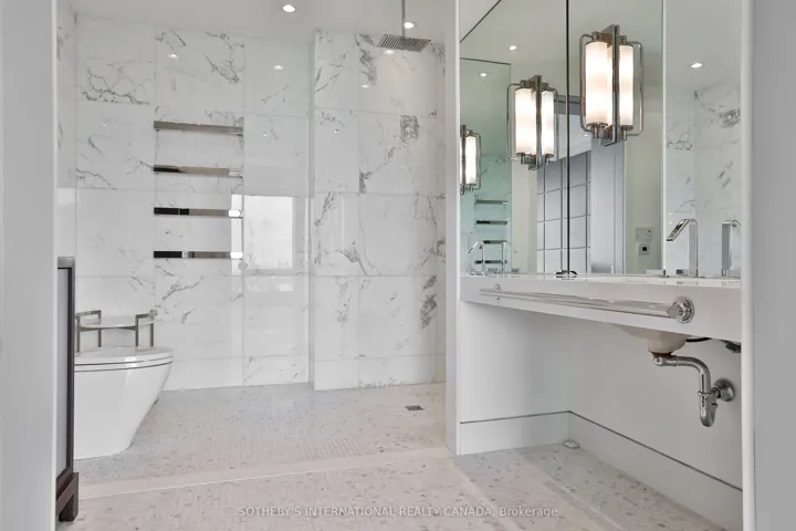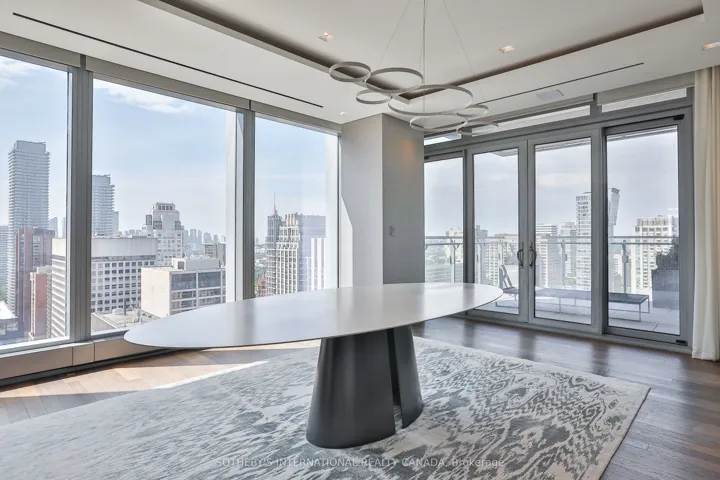+"PublicRemarks": "This extraordinary suite at the Four Seasons Private Residences in Yorkville redefines luxury living in the heart of Toronto. This is not just a residence but an elevated lifestyle reserved for a select few. Created by merging two units into a single masterpiece, the suite spans approximately 5000 square feet with soaring 10' ceilings, presenting the scale and poise of a home in the sky. Enter via two private elevators directly into an elegant foyer of epoxied and honed marble, then step into luminous living spaces framed by floor-to-ceiling windows with sweeping south-west-east unobstructed views and two expansive private terraces.The culinary centrepiece is a chef inspired kitchen featuring custom Kobi cabinetry, two waterfall edge Statuario marble islands and fully integrated Subzero and Miele appliances. Rich walnut and Xorel panels, Moncer custom Herringbone Oak Hardwood flooring and a floating fireplace showcase meticulous design throughout. Four generous bedrooms and five bathrooms - including a primary ensuite with heated floors, Vola plumbing fixtures, honed Calacatta Oro epoxy filled mosaic detailing and large walk in closet - offer sanctuary and luxury in equal measure.Comfort and ambiance are seamlessly managed via two hvac units with concealed returns and linear vents. Residents enjoy world class Four Seasons services: 24/7 concierge, full service spa, valet parking, indoor pool, state of the art gym and wellness centre, room service, house keeping and culinary options include Cafe Boulud and D bar lounge, all in a secure refined environment"