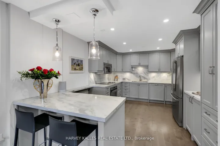 +"PublicRemarks": "A Singular Masterpiece at Bedford Glen. Introducing the most exceptional and expansive residence to grace the coveted Bedford Glen Community - an extraordinary, one-of-a-kind suite offering 2,090 sq ft of single-level living. The seamless combination of two suites, this bespoke home was completely reimagined and rebuilt from the studs up with the highest level of craftsmanship, design, and elegance truly a rare offering in a boutique setting. Every inch of this home speaks to refined taste and meticulous detail: two marble floor foyers, rich hardwood flooring throughout, and a chef's dream kitchen adorned with marble countertops, backsplash, and breakfast bar. Custom cabinetry and built-ins enhance the space with both beauty and function, while exquisite decorative glass and barn doors and marble windowsills elevate the interiors to a level rarely seen. The gracious family room features a marble surround fireplace, a full servery with a second fridge, wine fridge, and dishwasher- perfect for elegant entertaining. A marble desk in the home office, heated floors and towel racks in the ensuite add indulgent comfort. Thoughtfully curated accoutrements abound, each one contributing to the unmatched sophistication and comfort of this residence. Complete with three balconies, two parking spaces and two lockers, this suite is nestled within a quiet cul-de-sac, overlooking a private ravine with manicured gardens, a footbridge, waterfall and fish pond - an exclusive oasis for residents alone. With an impeccably managed building, robust reserve fund, and all-inclusive maintenance fees, this is the rarest of the opportunities to own the crown jewel of Bedford Glen."