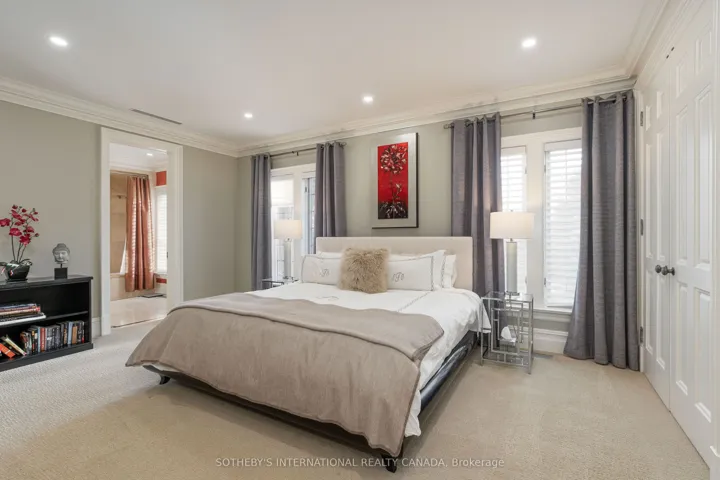 +"PublicRemarks": "Arguably one of Torontos most iconic estates, this French-style chateau is an extraordinary expression of European grandeur on a 3.12-acre double lot in the prestigious enclave of Bayview Ridge. Designed by renowned architect Gordon Ridgely, the residence commands unobstructed western views over the Rosedale Golf Club. Beyond the stately stone gates and circular drive, manicured gardens by Ron Holbrook frame a breathtaking setting featuring a negative-edge infinity pool, a reflecting pond with a stepped waterfall, tennis court, kitchen gardens, flagstone terraces, and a stone cabana. The striking facade spans nearly 150 feet, clad in Indiana buff limestone and rubble stone with Vermont unfaded green slate shingles and lead-coated copper details. An ivy-clad turret anchors the asymmetrical design, lending the home its signature silhouette. Inside, over 15,000 square feet of living space showcases Brazilian cherry wood floors with African wenge inlay, acid-etched antique Crema Marfil marble, coffered ceilings, Indiana limestone fireplaces, and solid North American cherry doors. Six principal bedrooms and two additional suites are complemented by ten baths and warm, richly detailed interiors. The main floor features an impressive library and office with wood-burning fireplace, a grand dining room with artisan-painted walls and ceilings, a conservatory beside the spacious family room, and a sunlit morning room perfect for coffee. Three staircases, including a hidden passage, lead to the lower level with a Bordeaux-inspired wine cellar, cigar room, gym, nanny suite with two bedrooms, a full kitchen, and a large recreation space. Upstairs, the primary suite offers a six-piece spa bathroom, dual dressing rooms, gas fireplace, and sweeping views. Each bedroom enjoys an ensuite bath and sitting area, blending luxury with practicality. This remarkable estate is a once-in-a-generation offering at once grand, intimate, and built to endure."