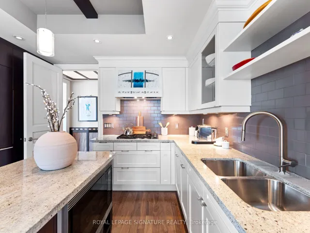 +"PublicRemarks": "Step off your private elevator into a light-filled home offering sweeping, views of the city.With floor-to-ceiling windows and a private balcony, refined finishes and elegant details create a calm, sophisticated atmosphere above the city below. The custom Downsview kitchen is both striking and functional, equipped with top-of-the-line Wolf and Sub-Zero appliances. The open layout connects effortlessly to the breakfast nook and dining room, creating a warm and inviting flow throughout the living space. Walnut hardwood floors, with a fireplace made of birds eye maple. The spacious living room features a sleek gas fireplace encased in custom woodwork, and elegant finishes, ideal for hosting guests or enjoying quiet nights at home.Every corner of this suite has been thoughtfully curated, with luxurious materials, designer lighting, and custom built-ins that elevate the everyday. This is more than a residence - it's a refined lifestyle in one of Toronto's most coveted buildings. A rare opportunity to own a one-of-a-kind home where luxury, location, and design come together flawlessly. Enjoy five-star concierge and valet service, along with world-class amenities. Ideally located just minutes from Yorkville, Forest Hill, and Yonge & St. Clair. This residence includes two premium parking spaces, a spacious locker, high-end built-in speakers, designer light fixtures, and top-tier appliances - every detail thoughtfully upgraded for comfort and style."