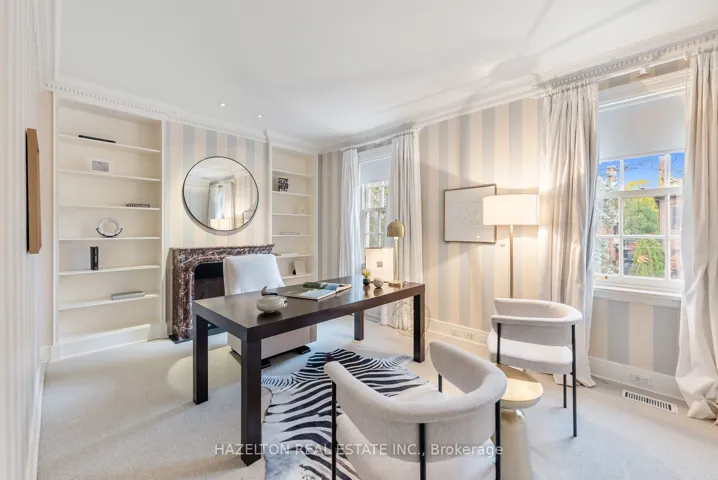 +"PublicRemarks": "This majestic Neo-Georgian home sits proudly on the best block in all of the coveted south west Rosedale. This serene & peaceful pocket is ironically steps to all the fabulous shops & restaurants on Yonge St. Your children can conveniently walk to Branksome & York school. The York Club & Toronto Lawn are also just minutes away. The joy & convenience that come with living in this coveted enclave cannot be overstated. 52 Rosedale Rd. transports you to the earliest days in Rosedale, where the grand mansions with their elegantly proportioned rooms & tall ceilings were home to Toronto's founders. From the beautiful chef's kitchen w/cozy eat in area, to the grand dining area, one can host extravagant dinner parties, the oversized living area is the perfect backdrop for unwinding day to day, & hosting fabulous cocktail parties. All of these impeccable spaces overlook the superb gardens that sit peacefully behind the tall garden wall, ensuring tranquility & privacy. More than meets the eye, deceptively large rear garden offers an abundance of space for outdoor enjoyment including a plunge pool, if so desired. The large sunken den area with tall & deep coffered ceilings is an absolute delight. The 2nd floor houses 2 accessory bedrooms, each w/ensuite baths & the primary bedroom sanctuary. This expansive space boasts his & hers closets & bathrooms & a private office that provides a quiet workspace. The 3rd floor houses 2 additional bedrooms & an oversized room perfect for a home gym or recreational space for children. Walk out to your private sun deck, tan & enjoy breathtaking views of the Toronto skyline. The lower level boasts great ceiling height throughout, the large rec area is the perfect space for kids of all ages. 52 Rosedale Rd. offers best in class parking, with a full 2 car garage with direct access to the home, 2 additional spaces in front of the garage & a stately circular drive that can easily carry 3 more cars."