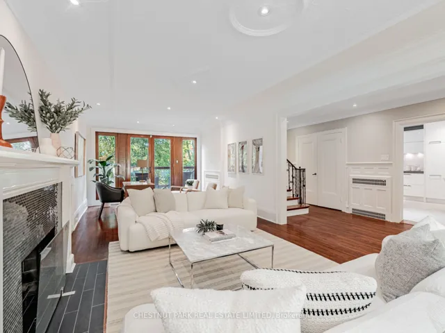 +"PublicRemarks": "In the heart of Lytton Park, nestled in a picturesque ravine-like setting, this timeless family home exudes warmth, character & thoughtful modern upgrades.A classic centre-hall plan offers an inviting layout filled with charm-featuring hardwood floors, crown moulding, wainscoting, and beautiful proportions throughout.The modern Scavolini kitchen is a showpiece, boasting quartz countertops, high-end appliances, wine fridge & a large centre island. It flows into the dining room, complete with an Eco Smart gel fireplace & a backlit walnut feature wall-creating a sophisticated space perfect for entertaining or relaxed family living.Upstairs, three spacious bedrooms offer flexibility-each large enough to serve as a primary suite. The actual primary bedroom features a renovated 4-piece ensuite, while the other two have plenty of closet space & room for all you need plus a renovated 4pc Hall bathroom.The lower level is bright & inviting, with large windows, a side entrance, and a walkout to the backyard. The back of the house is almost entirely above grade & offers excellent ceiling height with sunny rooms incl a recreation room, 4th bedroom, laundry room & plenty of storage.This tastefully renovated home has had many mechanical upgrades incl: plumbing, electrical, most windows, tankless HWT, Boiler & More. Outdoors, a private south-facing lot provides an exceptional retreat surrounded by mature trees. Enjoy a saltwater pool with an outdoor shower, a Swedish sauna (housed in the converted garage), & a fully fenced yard-an oasis for relaxation or entertaining. Once owned by the celebrated Canadian poet E.J. Pratt, this home carries a rich history and enduring appeal. With its stone front patio, lush greenery, & classic curb appeal, it stands as a beautiful blend of tradition & modern living.Located within walking distance to Toronto's most coveted public and private schools, this exceptional residence offers the perfect balance of serenity, sophistication & city convenience."