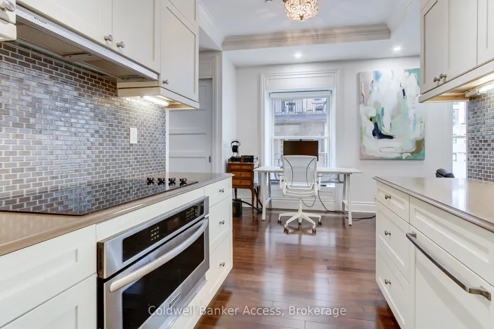 +"PublicRemarks": "Luxury condo living in the Omni King Edward Hotel Private Residences. This 785 sq. foot, quiet large corner unit offers a private residential retreat with a separate and secure resident only entrance and at the same time offering exclusive access to hotel luxury, five-star amenities including, 24-hour concierge and valet service, restaurant and bar/coffee shop/hair salon, gym and spa, owners lounge 11th floor, business area, with 24-hour security. Room service is available to residents. The St. Lawrence Market, Financial District, churches, parks, subway, public transit, grocery stores, all within walking distance directly outside your door. The Path is one block away. This open-concept, spacious unit has 4 large south and west facing windows, providing ample light. The 10-foot coffered and crown molding ceilings in both the living room and dining area provide a grand feeling of the historic era. Custom blinds, upgraded LED flush mount dimmer ceiling lights were upgraded in 2024. The bathroom features a spa-like deep soaker tub/shower combination and marble floors, a new vanity light, sink and vanity top were upgraded in 2024. The bedroom accommodates a king size bed and has a large closet. Hardwood floors throughout the living space. The kitchen offers a Leibherr panelled fridge and dishwasher, Kitchen-Aide convection oven/microwave, quartz countertops with large counter space. Extra height kitchen cabinets, provide ample storage. Extra large hall closet and a stackable Asko washer and dryer come with the unit. Conveniently located in downtown Toronto, with a 100 walk score. One storage locker is provided with the condo."