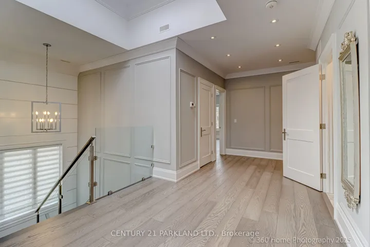 +"PublicRemarks": "Welcome to this palatial 6,000+sf of living area residence, elegantly adorned with magnificent crystal chandeliers. Truly open concept design with glass railings (inside & out) & open staircases with 3 inches thick solid wood steps. Featuring all generously sized and elegant rooms - perfect for great entertaining. Chefs kitchen with large center island and quartz counters/backsplash. Spa-like 6pc ensuite overlooking the garden. Private 4 stop elevator connected to the garage - no need to use stairs for any floor. 10ft ceilings on main & lower floors, 14ft in Library and foyer. Wine cellar for 159 bottles. Large stamped concrete patio for entertaining. All bathrooms on 2nd level with heated floors, and entire lower level with radiant heating"