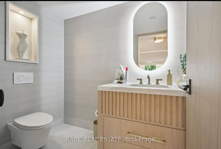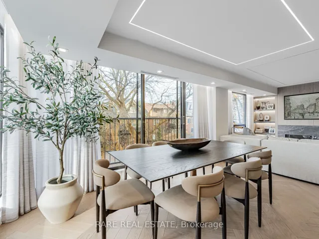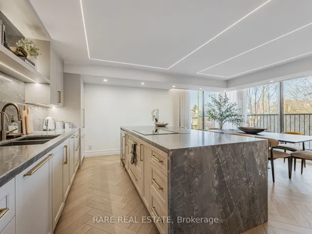 +"PublicRemarks": "Experience sophisticated living in this meticulously renovated 2-bedroom,FULLY FURNISHED 2-bath suite nestled in the prestigious Forest Hill Village. Spanning approximately 1,450 sq. ft., this residence boasts an open-concept design complemented by exquisite custom finishes. The gourmet kitchen features a waterfall island with a built-in bar fridge, high-end Gaggenau appliances, and a sleek electric downdraft hood fan seamlessly integrated into the cabinetry. A reverse-osmosis water tap enhances the culinary experience. Elegant wood paneling, a built-in electric fireplace, herringbone hardwood floors, and thoughtfully curated lighting create a warm and inviting ambiance throughout. The primary suite offers custom closets and a luxurious ensuite with a glass-enclosed shower, soaking tub, and double sinks. An oversized laundry room with full-size appliances provides ample storage. Included are one parking space and EXTRA LARGE WALK IN a storage locker. The lease encompasses bi-weekly cleaning for added convenience. Building amenities include a renovated pool, fitness centre, sauna, stylish party room, and a sunlit outdoor terrace with BBQs. This boutique 35-suite residence offers an exceptional blend of comfort, style, and prime location in the heart of Forest Hill Village. Minutes to the TTC Subway and Loblaws."