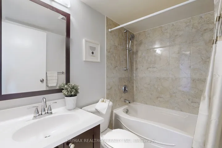 +"PublicRemarks": "Beautifully upgraded and meticulously maintained, this large condominium unit offers 2 generously sized bedrooms, a separated den/solarium, an open concept living and dining room, a large kitchen with eat in kitchen area and breakfast bar and two renovated bathrooms. The primary ensuite has a stand-up shower with custom glass enclosure and ceramic tiles and two large, mirrored custom closets. The second bedroom offers a large wall to wall custom closet for extra storage. The kitchen is equipped with quality granite countertop and backsplash, white cabinetry and stainless steel appliances. The suite is inundated by natural light through large windows and has an unobstructed South view. Resort like amenities include: gym, squash and tennis court, sauna, outdoor pool, party room, billiard/rec. room, lavish landscaping, visitor parking and 24 hours gate house security. The monthly maintenance fee includes: heat, hydro, parking, water, building insurance, building maintenance, cable TV, central air conditioning"