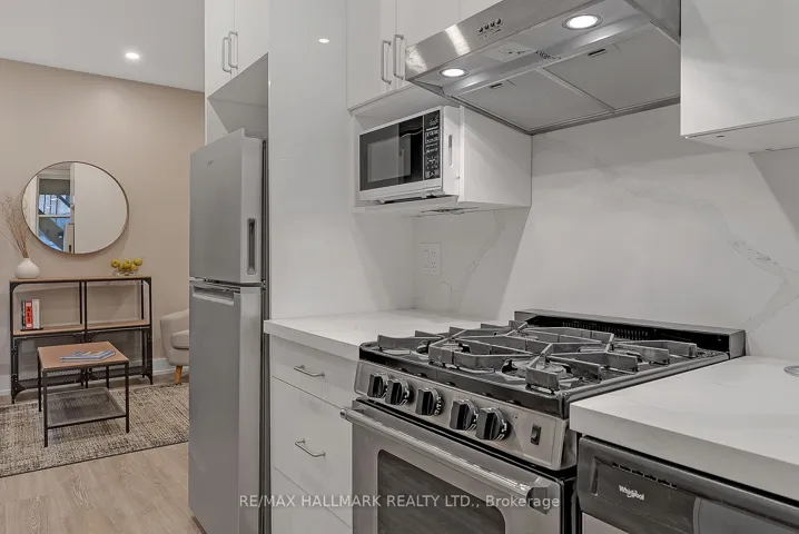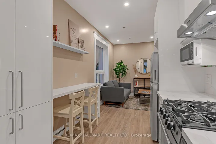 +"PublicRemarks": "A beautifully reimagined residence where modern design meets timeless character. This impeccably renovated ground level apartment sits within a unique, restored historic building and offers the perfect blend of style, comfort, and convenience - just steps to George Brown St. James Campus, TMU, and the Eaton Centre. 3D Virtual Tour Available. Inside, soaring 9+ ft ceilings, exposed brick throughout, and luxury vinyl plank flooring in every room create an inviting backdrop for the bright, open-concept living space. The apartment comes fully furnished, featuring a queen bed in the primary bedroom and a double bed in the second bedroom, along with Whirlpool stainless steel appliances, pot lights throughout, and carefully curated finishes.The home is also equipped with multiple security features, including secure buzzer entry, enhanced building access controls, and well-lit common areas for added peace of mind. Monthly cleaning service (excluding bedrooms) is included for truly effortless living. Enjoy shared outdoor space, with secured parking available for $100/month. High-speed in-suite internet is included for an additional $100. A rare opportunity to live in a refined historic setting with every urban convenience at your door."