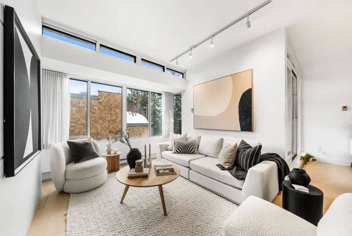 +"PublicRemarks": "Positioned at the confluence of Summerhill, The Annex and Yorkville, The Oaklands is one of midtown Toronto's most coveted buildings - a luxury offering situated within a quiet, tree-lined pocket offering privacy rarely found this close to the city's core. Designed by the esteemed partnership of Macy Du Bois and Helga Plumb, the building is an award-winning example of late-stage modernism, defined by strong horizontal lines, clay tile detailing, and a perfect marriage of architecture, light, and landscape. Subtle references to Frank Lloyd Wright are felt rather than stated, giving the building a warmth and permanence that has aged exceptionally well. Suite 337 is a refined two-storey residence offering nearly 1,600 square feet of well-scaled living space, complemented by both a private terrace and balcony. It lives more like a townhome than a condominium, with separation between entertaining and private quarters. The main level is open and inviting. A newly renovated kitchen features Fisher & Paykel appliances, stone countertops, and streamlined cabinetry that flows naturally into the living and dining areas. Floor-to-ceiling windows bring in morning light and open to an east-facing terrace - an ideal spot for coffee, reading, or quiet evenings at home. A discreet powder room and custom built-in millwork complete the level. The lower level is calm and private. The primary suite includes a walk-through dressing area, a spacious ensuite, and direct access to the balcony, shared with a generously sized second bedroom suitable for guests, work, or creative pursuits. A dedicated laundry and storage room, along with a comfortable reading nook, adds day-to-day ease. Thoughtfully updated, Suite 337 offers space, privacy, and architectural integrity - an ideal next chapter for those seeking quality. Set within the Cottingham School District and surrounded by Summerhill's historic streetscapes, 40 Oaklands Avenue remains a quietly significant address with enduring appeal."