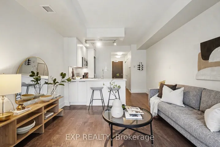 +"PublicRemarks": "718 Sq Ft. The Best Layout In The Building. The Only Exposure With Privacy And Ambience Of Unobstructed View. Den Can Double As A Bedroom, Or Office Space Or Extend Your Living Room Space. Spacious, Bright, Floor To Ceiling Windows, 9' And 10' Foot Exposed Ceilings, Master Bedroom W/ Ensuite 3Pc Bath. Engineered Upgraded Hardwood Floors, Stone Countertops, European Cabinetry And B/IAppliances,1 Parking, 1 Locker And Bike Rack Included. *For Additional Property Details Click The Brochure Icon Below*"