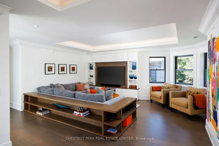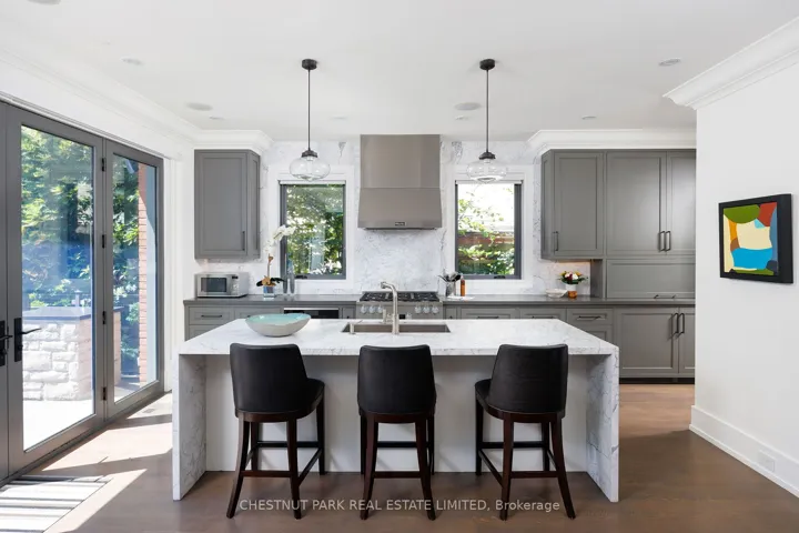 +"PublicRemarks": "Not up for a renovation? This is a rare opportunity to own a masterfully renovated family home in the heart of prestigious North Rosedale. Originally known as "Chimneys" for its abundance of fireplaces, this elegant residence blends timeless character with thoughtful modern design. Extensively renovated to the bricks in 2016 by JTF Homes under the guidance of designer Jay Gibson, the home's classic façade was preserved while the interiors were transformed into a sophisticated transitional-style home. Five original fireplaces were meticulously restored and upgraded to gas, harmonizing heritage charm with today's conveniences. The current owners further elevated the home in 2020 with a bold reimagining by Farrow Design Ltd. and Cornerbrook Construction Inc., adding refined touches by creating an incredible upper family room area in addition to an open concept living and dining room to suit today's living style. The home is filled with storage, with not just one but two mud rooms perfect for active family living! The sun-filled gourmet kitchen with a marble waterfall island, pantry cupboard, and appliance nook will please any chef and is open to the family room. The primary suite has French doors leading to a deck for both the south tree tops and the city skyline views. The coveted private drive leading to a 2-car garage is a definite bonus oasis the lovely landscaped gardens, stone deck with built-in stone BBQ. Full house generator to weather any storm or power outage. North Rosedale is the ideal place to raise a family with excellent schools, both private and public, nearby, as well as Chorley Park, Rosedale Park, Rosedale-Moore Park ravine system, Evergreen Brickworks, and Mooredale House community centre. Nearby Summerhill Avenue is home to many shops and services, including Summerhill Market. It is a quick commute to downtown by TTC or driving. Bloor Street Mink Mile and the shops and restaurants of Yonge and Roxborough are also close by."