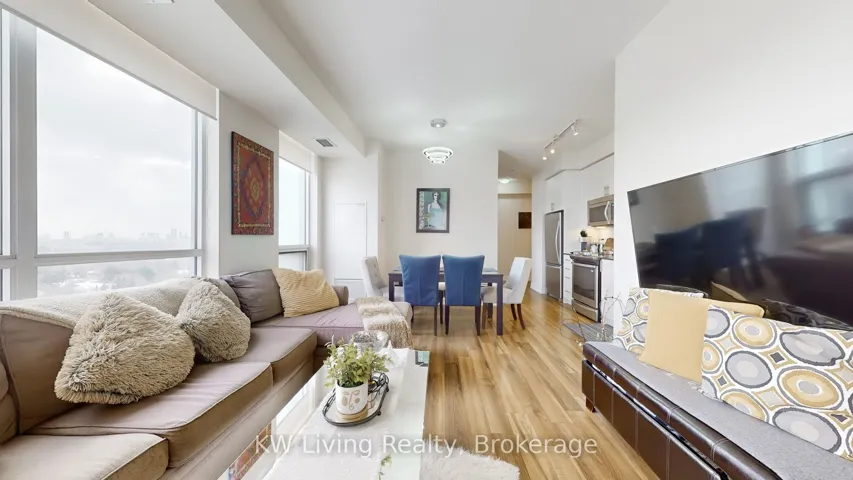 +"PublicRemarks": "Bright and well-maintained 2-bedroom, 2-bath corner suite at Tridel's Argento Condos, offering nearly 800 sq. ft. of thoughtfully designed living space with a functional split-bedroom layout. Featuring 9-ft ceilings, laminate flooring, and floor-to-ceiling windows with southeast exposure, this sun-filled home enjoys unobstructed views and a quiet setting away from busy roads. The open-concept living and dining area opens onto a balcony, ideal for entertaining. The modern kitchen is equipped with quartz countertops and stainless steel appliances. The primary bedroom includes a walk-in closet and 4-piece ensuite. High-speed internet included in maintenance fees. Building amenities include 24-hour concierge, fitness centre, steam room, party and theatre rooms, outdoor BBQ area, guest suites, and visitor parking. Prime location steps to TTC and minutes to DVP, Highways 401 & 404, Fairview Mall, Shops at Don Mills, Bayview Village, North York General Hospital, parks, and trails. A rare opportunity to own a quiet, sun-filled home in the heart of North York."