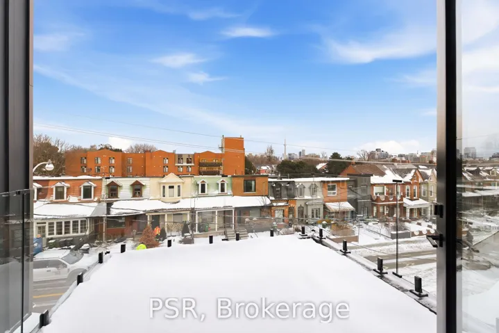 +"PublicRemarks": "Discover this brand new, custom-built modern home with striking architectural presence, showcasing soaring ceiling heights, walls of glass, and refined detailing throughout. The main level is anchored by an impressive double-height dining area defined by 19-foot ceilings and floor-to-ceiling window walls on two sides. With east and west exposures, natural light pours through the interior from morning to evening. The kitchen features extensive custom cabinetry, Taj Mahal-inspired porcelain stone surfaces, and a premium integrated appliance package. The adjacent living area features a striking three-sided glass fireplace. A convenient side entrance provides direct access to the kitchen and front closet, offering functional everyday entry into the home. The upper levels continue the home's emphasis on thoughtful design, offering well-proportioned bedroom spaces, custom closets, and beautifully finished bathrooms. The full-floor primary retreat occupies its own level, featuring 11.6-foot ceilings, and a spa-inspired ensuite with a freestanding tub, double vanity, and walk-in shower, along with extensive custom built-in storage and a built-in coffee bar with integrated beverage fridge, extending directly to a rooftop terrace with CN Tower views. The lower level offers impressive ceiling height and a highly functional layout, featuring vinyl flooring throughout, a laundry area with built-in cabinetry, an additional bedroom ideal for guests, a home office, or extended living space, and a three-piece bathroom. Additional features include white oak engineered flooring throughout the main and upper levels, Reynaers architectural aluminum windows and doors, automated window coverings, and curated designer lighting. Fully landscaped front and rear yards complete the property, featuring turf, and steel planters for a polished, low-maintenance outdoor experience. Ideally located in Toronto's west end, close to neighbourhood cafes, shops, transit, and everyday conveniences."