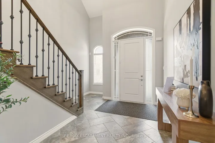 +"PublicRemarks": "Located in the highly desirable Vineyard Valley neighborhood, this stunning 2-story built by the award-winning Marz Homes in 2004, offers over 4000 sqft of impressive living space. Greeted by a grand stone and brick facade, showcasing exceptional curb appeal with a charming wrap-around porch and beautifully landscaped stone flower beds. Step inside to discover an inviting foyer with soaring 18-ft ceilings and a striking crystal chandelier that sets a tone of sophistication. The great room features a 12-ft ceiling and oversized windows that flood the space with natural light. The rest of the main level boasts 9 ft ceilings, creating an airy and inviting atmosphere. Enjoy cozy evenings by the gas fireplace in the family room or host memorable dinners in the large formal dining room. The kitchen is equipped with a corner pantry. An adjoining breakfast area that flows into the living and onto the patio.Venture upstairs to find 3 generous bedrooms, each with a walk-in closet, and a bright loft that overlooks the foyer, which could easily be converted into a 4th bedroom. The primary bedroom features a vaulted ceiling, while the ensuite boasts double sinks, a corner tub, and a separate shower. A 2nd bath and a conveniently located laundry room complete the upper floor.The basement offers in-law potential with a separate entrance from the garage. It features a spacious rec room with a fireplace, a spare bedroom, and roughed-in bath and wet bar. Step outside to your private, fully fenced yard, which includes a double gazebo covered concrete patio, and a garden area perfect for relaxation.Freshly painted, central vac and 2018 steel roof from Metstar. This prime location provides easy access to farmers markets, Lake Ontario, and a wealth of parks and walking trails. Explore nearby restaurants and charming towns along the Niagara Escarpment. Families will appreciate the proximity to the YMCA, schools and hospitals, with a quick drive to downtown and just a minute to the QEW."