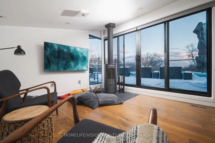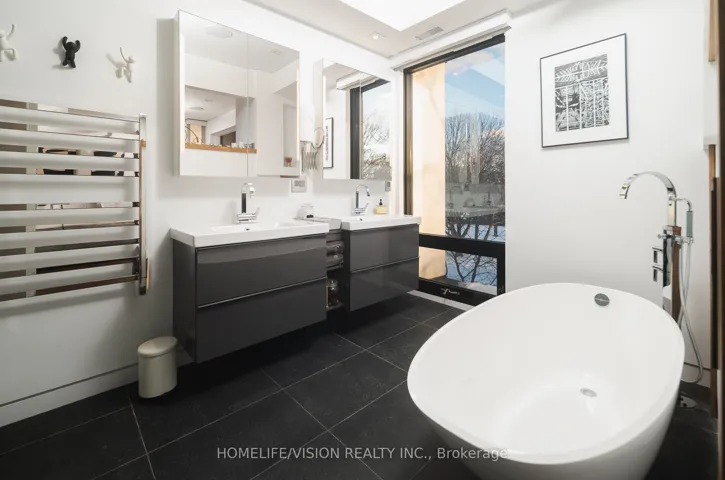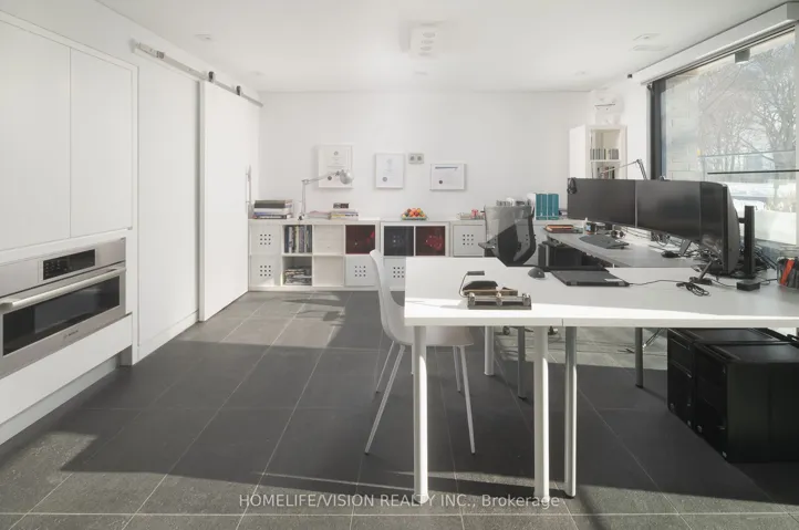 +"PublicRemarks": "Discover architectural elegance in this custom-designed detached home situated in prestigious North Rosedale neighborhood. Experience seamless indoor-outdoor living with breathtaking nature views at historic Chorley Park, visible right from your doorstep and through the expansive floor-to-ceiling windows, offering a tranquil ambiance in the citys heart. This sophisticated 3-storey smart home features four luxurious bedrooms, each with a private en-suite bathroom, ensuring ultimate privacy and comfort. The ground level is a versatile space, perfect for an office or in-law suite, complete with in-floor heating, refrigerator, oven, dishwasher, en-suite bathroom, and laundry facilities-functioning as a self-contained unit ideal for guests or family members gourmet kitchen, with top-of-the-line appliances, flows effortlessly into the family room and out onto a stunning deck, perfect for entertaining with picturesque nature views. A private drive with a built-in garage offers interior access, featuring dual entrances from Douglas & Astley, ensuring convenience and security. This home's unparalleled view and location are unrivaled, making it a true architectural masterpiece. The third-floor loft suite, serving as the fourth bedroom, opens onto a stunning wrap-around terrace with sleek glass railings, providing panoramic and unbeatable views of downtown. This expansive outdoor space is perfect for entertaining guests or enjoying a tranquil retreat under the sun, making it an architectural highlight of the home. Office/Guest Suite & all Bathrooms have Hydronic heated floor.The location offers convenient and straightforward access to the ravine, as well as the popular Evergreen Brick Works, making it easy for visitors to explore these natural and cultural attractions. This home is the epitome of dream living, offering everything you could ever desire and more."