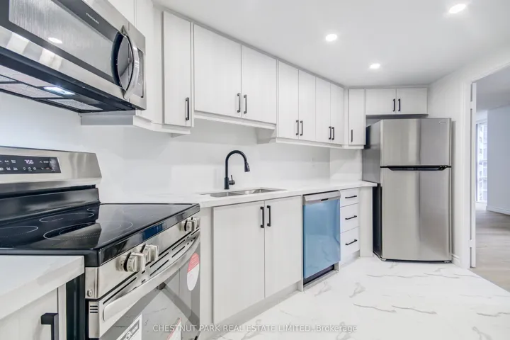 +"PublicRemarks": "This may be the one you have been waiting for. Freshly completed, this major renovation of the 1,623 square foot Rockefeller layout delivers a rare opportunity for refined, resort style living within a superb condominium residence. Offering the generous proportions of a traditional Toronto home without stairs or maintenance, this exceptional suite is ideal for those seeking space, comfort, and timeless elegance. A gracious formal foyer welcomes you in, providing a sense of arrival and thoughtful separation between the hallway and main living areas. Generous room dimensions are enjoyed throughout, beginning with a brand new luxury eat in kitchen featuring full size stainless steel appliances, stone countertops, excellent pantry storage, and LED pot lighting. The kitchen overlooks the formal dining room, highlighted by floor to ceiling windows and rich hardwood flooring, creating an inviting setting for both everyday living and entertaining. Further into the suite, a large separate den/sunroom or family room offers remarkable flexibility, also enhanced by floor to ceiling, all new windows. This space is perfectly suited as a home office, media room, or multi purpose retreat tailored to your lifestyle. The desirable split bedroom layout provides excellent privacy. The primary bedroom is truly impressive, comfortably accommodating a king size bed and traditional furnishings, and featuring a generous walk in closet, a five piece ensuite, new floor to ceiling windows, and hardwood flooring. The second bedroom is equally spacious and refined, offering a double closet, floor to ceiling windows, and brand new hardwood flooring. A rare blend of scale, style, and turnkey living in an exceptional condominium setting."