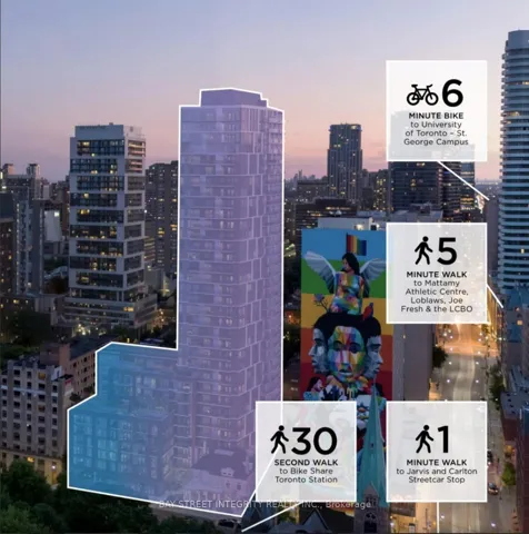 +"PublicRemarks": "Welcome to One Year New JAC Condo In The Heart Of Downtown Toronto. Super Convenient Location At Jarvis St & Carlton St. Easy Access to TTC Streetcar and Subway. This Stunning and Spacious 2 Bedroom +2 Bathroom Unit with Natural Light. The Large Balcony with Unobstructed Breathtaking Cityscape and Lake Views. Modern and Open Concept with High-End Stainless-Steel Appliances. Perfect Walking Score Of 100, Steps away from Toronto Metropolitan University (TMU). Directly Across from Allan Gardens. Close to George Brown College, U of T, Eaton Center, Hospitals, Fine Dining, A Variety Of Retail Shops and Entertainments. Premium Amenities Included 24H Concierge, Gym, Pet Spa, Yoga Studio, Media Lounge, Music Room, BBQ Area, Party Room, Meeting Room and Many More! Experience Life in This Amazing Community You'll Proudly Call Home. Students Welcome!!"