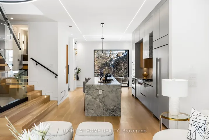 +"PublicRemarks": "Welcome to 74B Rathnelly Ave - a brand-new, never-lived-in, custom-built luxury home in the prestigious Republic of Rathnelly one of Toronto's most in-demand neighbourhoods, minutes to Yorkville and close to some of the best private and public schools in Canada. A truly rare offering with exceptional design, craftsmanship, and high-end finishes throughout.Featuring German-imported Schüco aluminum windows and doors with triple-glazed glass, wide-plank white oak flooring, and a sleek trimless modern design with drywall-groove detailing. Impeccable interior detailing includes custom wall paneling and millwork, a statement mono-beam staircase, glass railings throughout, and upgraded strip lighting/fixtures.Chef's kitchen with custom-painted cabinetry, premium Sub-Zero & Wolf appliances, and natural stone countertops including Super White. Natural stone carries throughout the home (vanities, basement bar, fireplace), highlighted by a dramatic triple-sided marquee fireplace. Spa-inspired bathrooms feature Cari Mali Italian fixtures and wall-hung Duravit toilets, plus Italian tile and slab finishes with a strong focus on the Italian-slab basement.Enjoy a two-level, double-height heated basement with large rec room and bar area. Exterior impresses with high-quality linear brick wrapping the sides/rear/walkout, extensive interlock (including interlock driveway), and a standout snow-melt heated driveway, front porch, and rear walkout. Entertain on the composite deck and enjoy a large backyard rarely found in the area. Integrated heated garage (extremely rare in the neighbourhood), two furnaces + two A/C systems, high-efficiency spray-foam insulation, and smart security/speaker system."