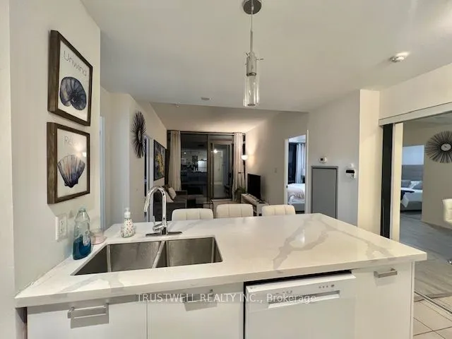 +"PublicRemarks": "Turn-key and freshly painted, this bright two-storey suite offers a functional layout and exceptional natural light. The kitchen is generously sized and overlooking the living room, creating an open and connected main living space . The living room features a walk-out to the balcony and dramatic two-storey, floor-to-ceiling windows that fill the suite with natural light. A convenient 2-piece powder room completes the main level. Upstairs, the spacious bedroom includes in-suite laundry and a private ensuite bath, offering a comfortable and practical retreat. Ideally located close to everyday amenities, with Loblaws across the street and the Fleet streetcar at your doorstep. Enjoy being minutes from the waterfront and green space at Coronation Park. Parking and locker included."