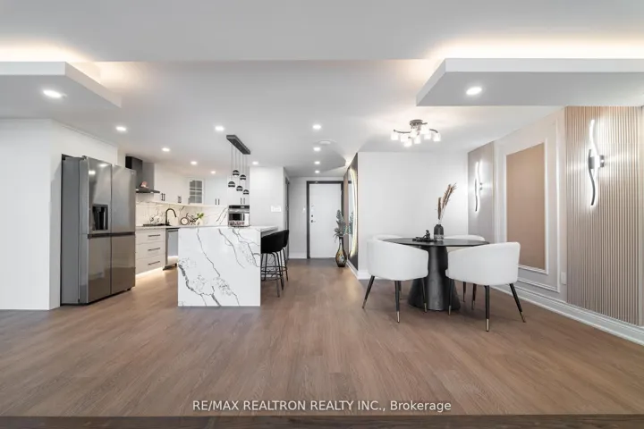 +"PublicRemarks": "One-of-a-kind, fully renovated suite in the prestigious Skymark II by Tridel! This spacious2-bedroom + den, 2-bath home boasts a rare separate laundry room, a sleek open-concept layout,and a custom kitchen with quartz countertops, island, and premium cabinetry. Designer upgradesinclude porcelain-tiled bathrooms with modern vanities, crown moldings, LED pot lights, and anelegant electric fireplace in the family room. The primary bedroom features a walk-in closet,while the versatile den makes a perfect home office. Includes 2 parking spots. Enjoyresort-style amenities: indoor/outdoor pools, tennis, squash, golf simulator, gym, billiards,media room, and beautifully landscaped gardens. Hallway renovations scheduled for summer 2025.Prime location steps to TTC, Fairview Mall, shopping, dining, and major highways. A truegem-move in and enjoy!"